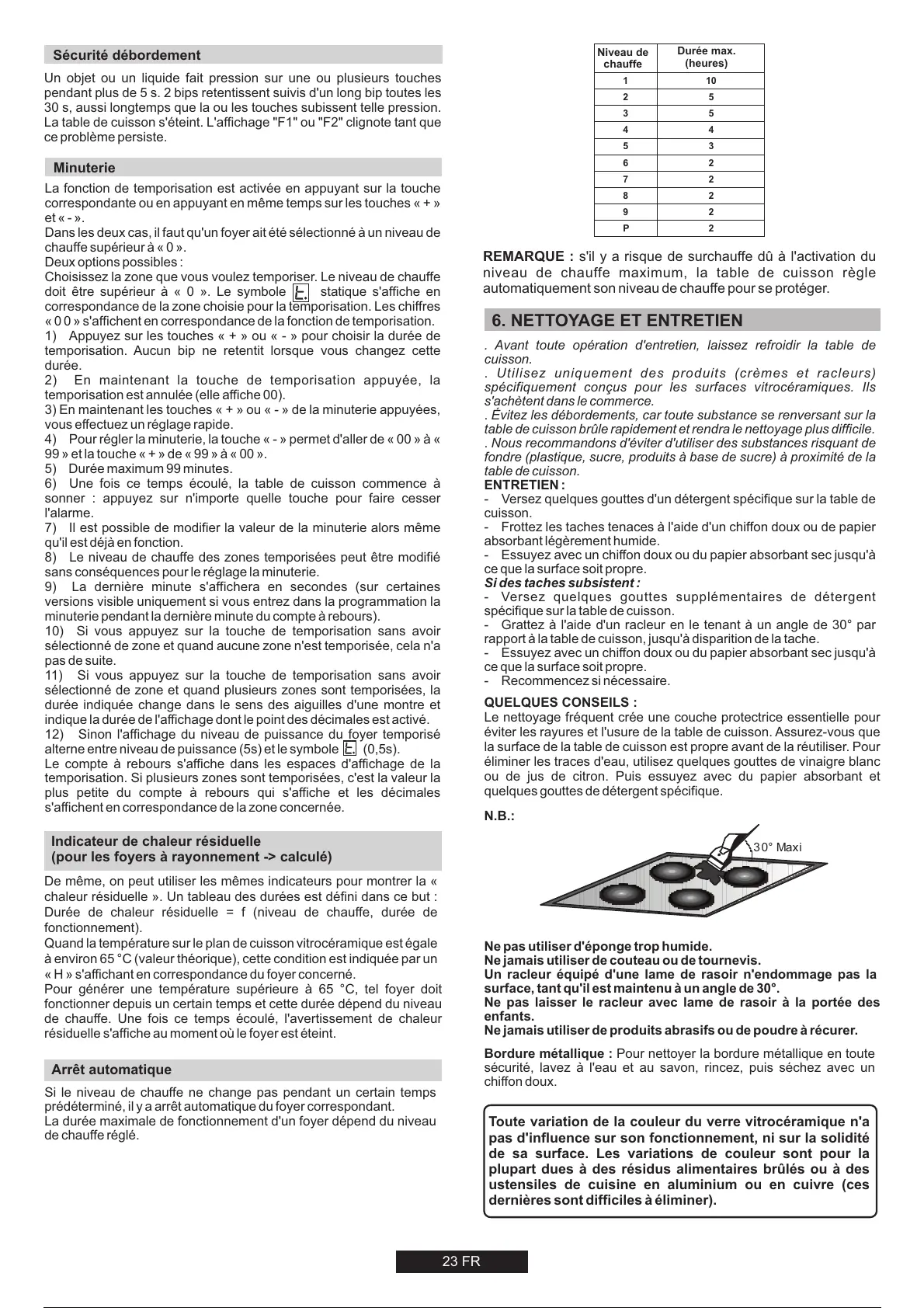 la surface de la table de cuisson est propre avant de la réutiliser. Pour