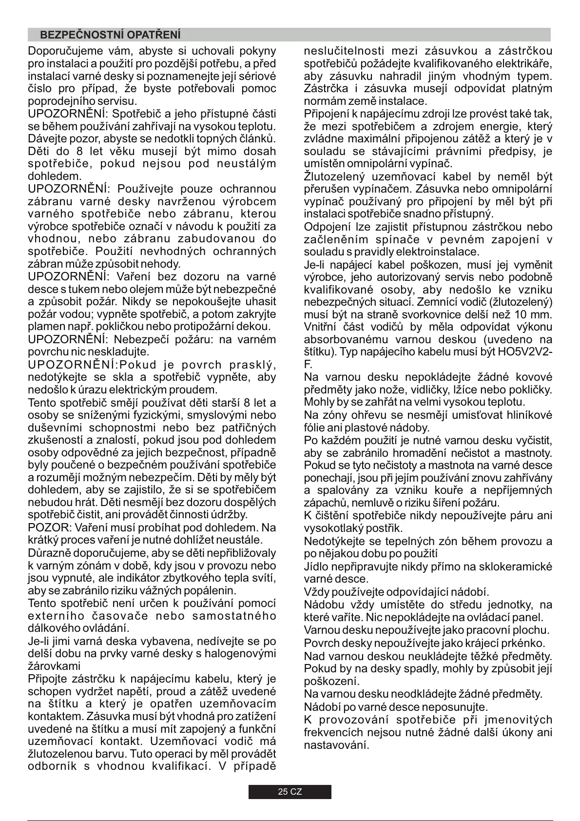 POZOR: Vaření musí probíhat pod dohledem. Na