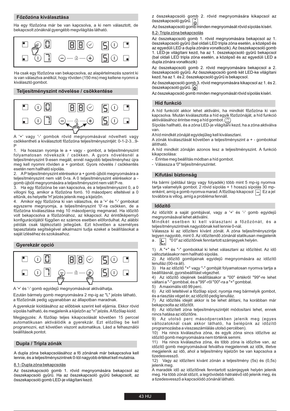 főzőzóna kiválasztása még 10 másodpercig megmarad. Ha időzítő