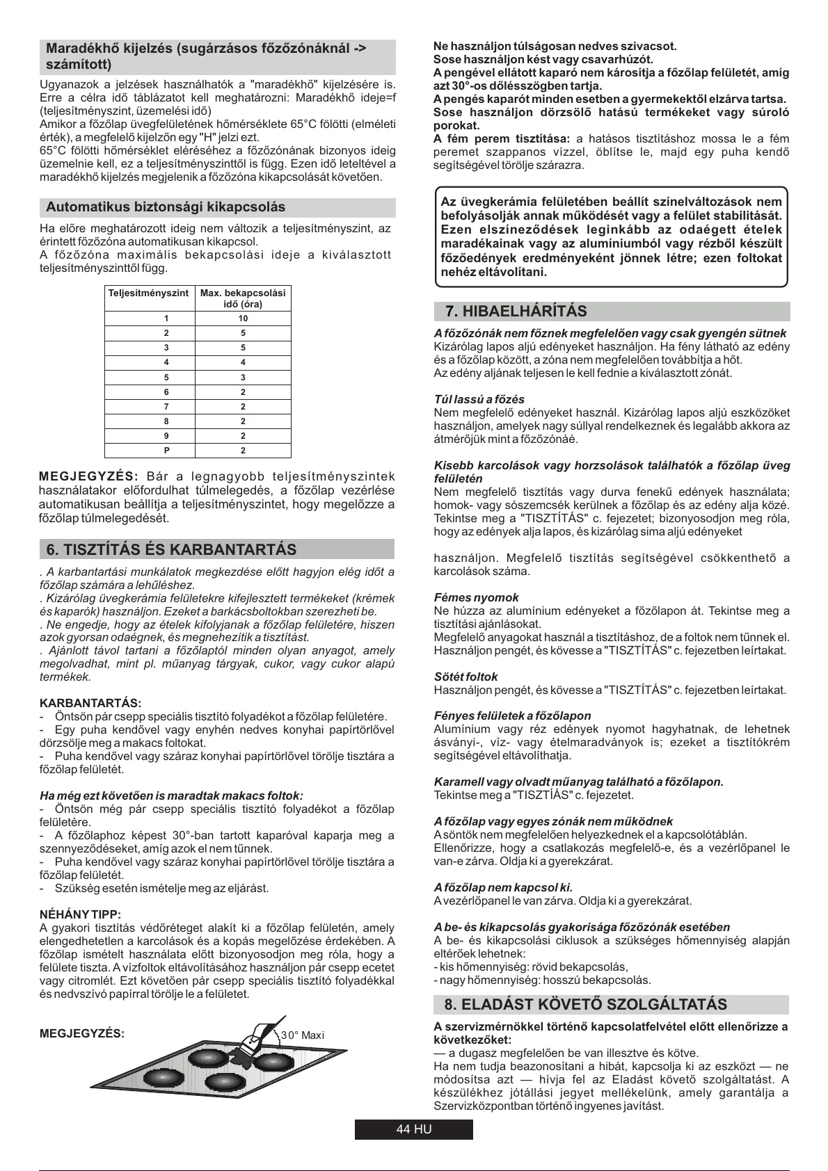 főzőlap ismételt használata előtt bizonyosodjon meg róla, hogy a