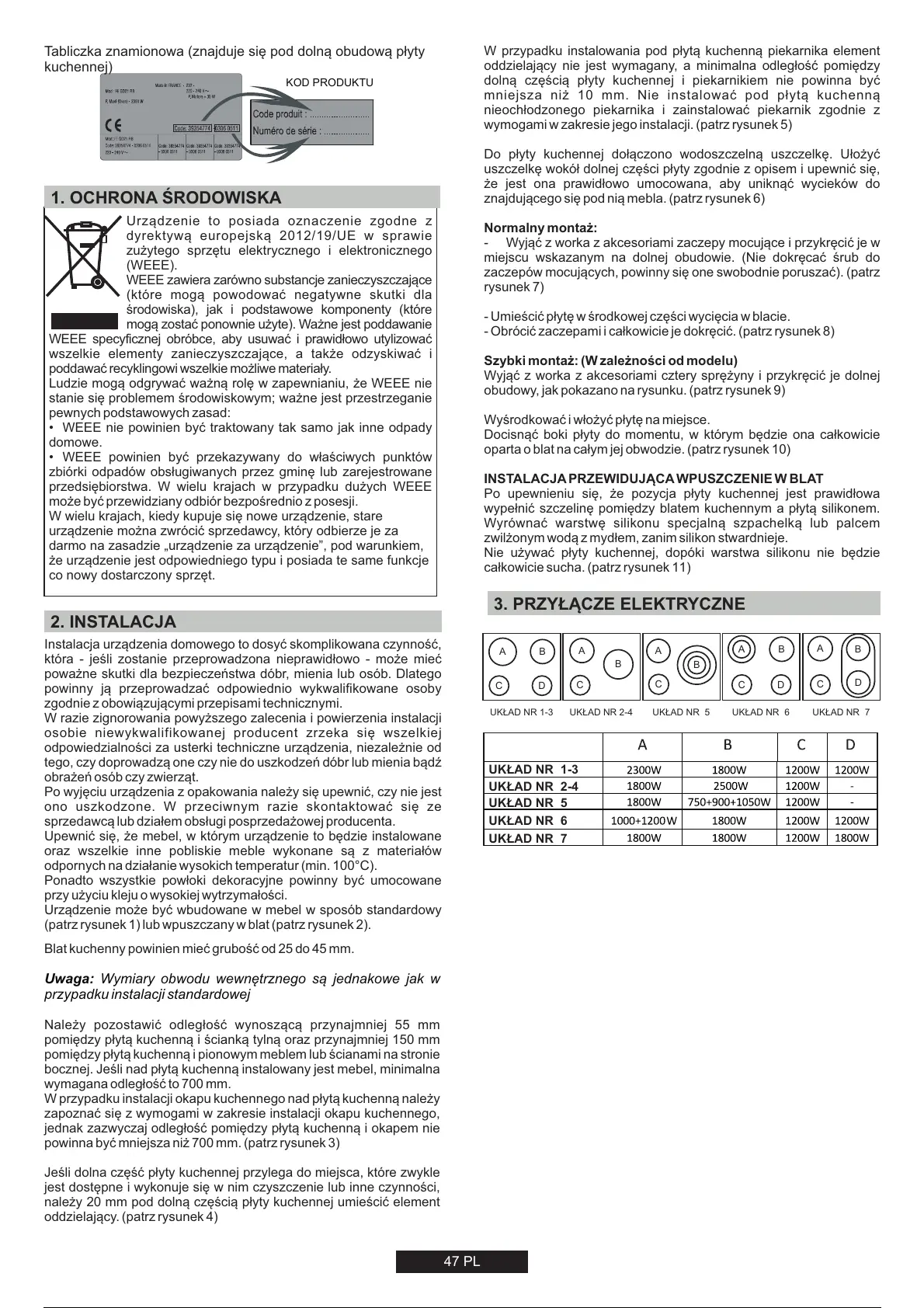 Tabliczka znamionowa (znajduje się pod dolną obudową płyty