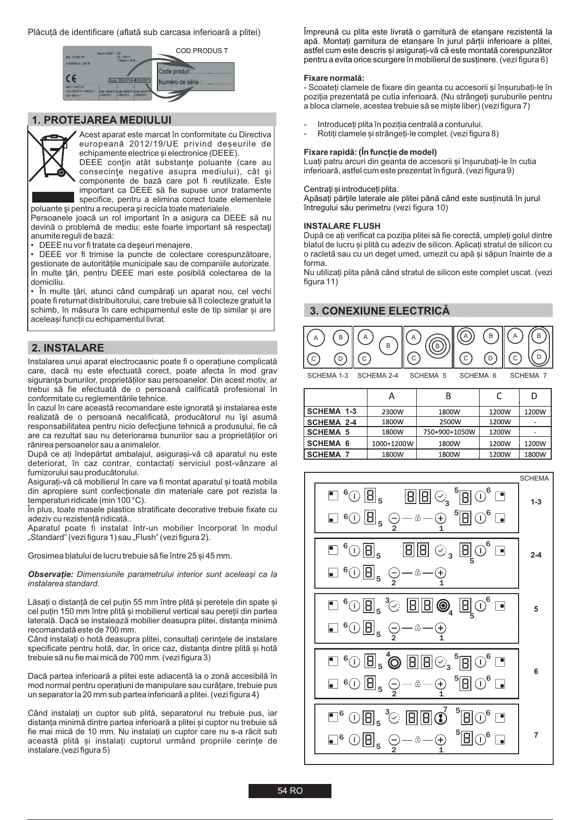 Plăcuă de identificare (aflată sub carcasa inferioară a plitei)