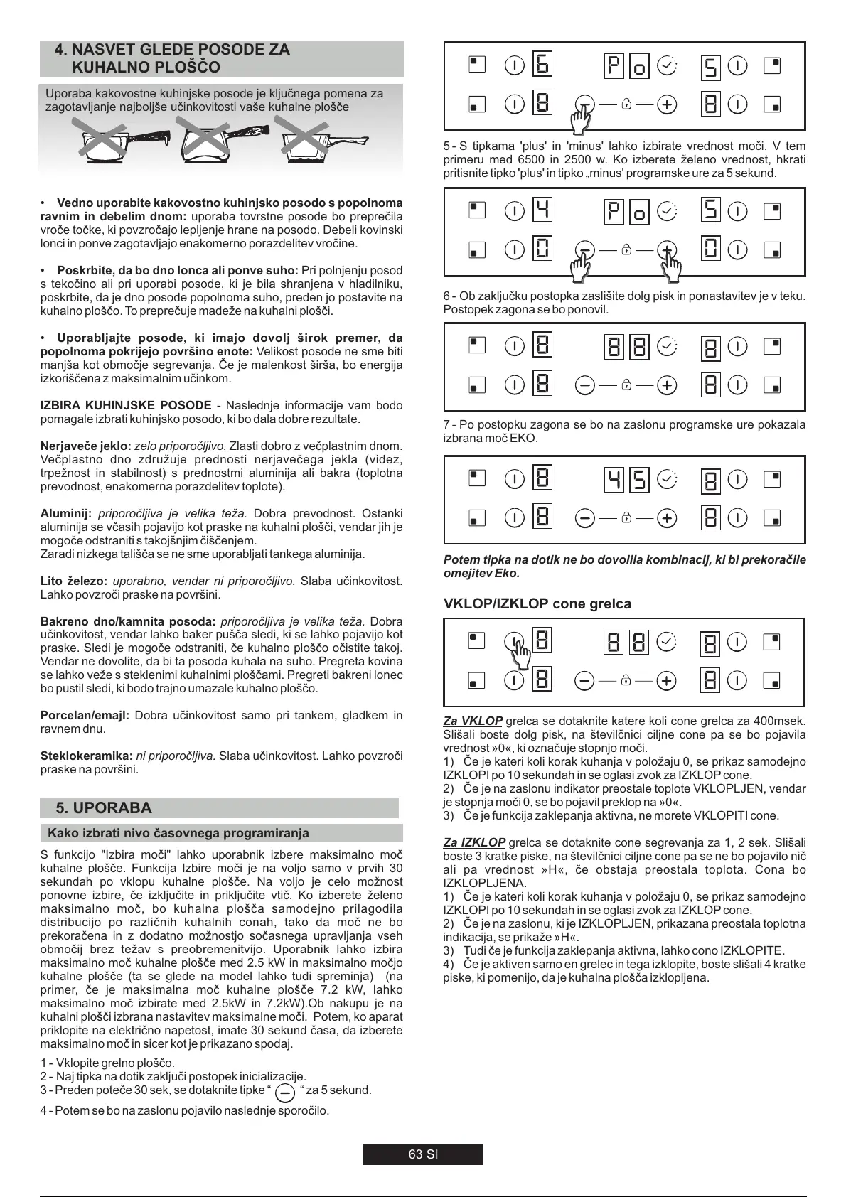 kuhalne plošče. Funkcija Izbire moči je na voljo samo v prvih 30