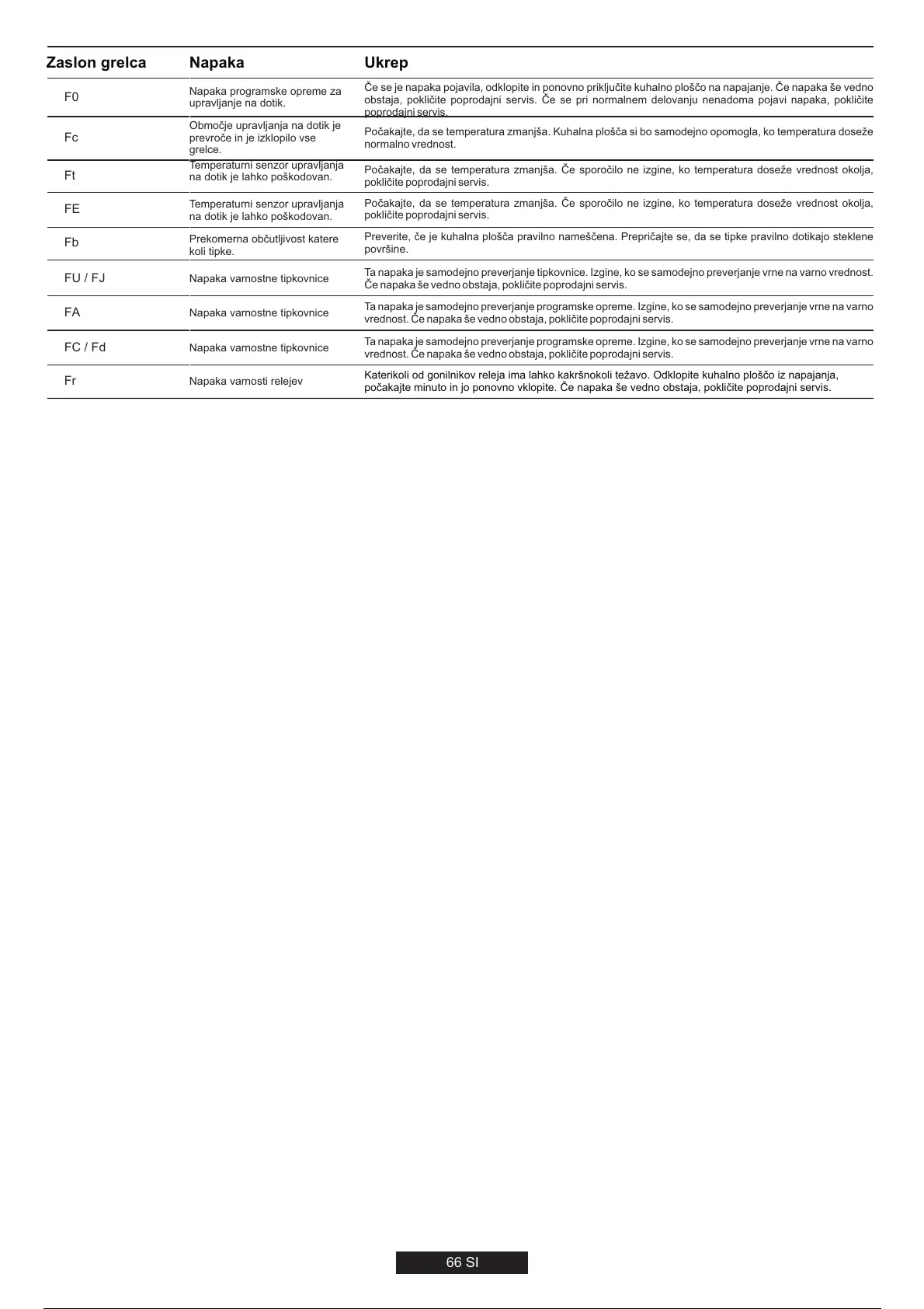 Če se je napaka pojavila, odklopite in ponovno priključite kuhalno ploščo na napajanje. Če napaka še vedno