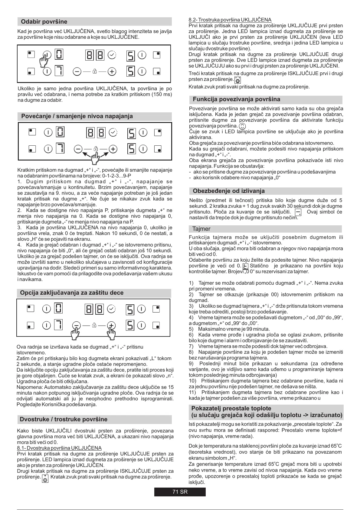 8) Napajanje površine za koju je podešen tajmer može se izmeniti