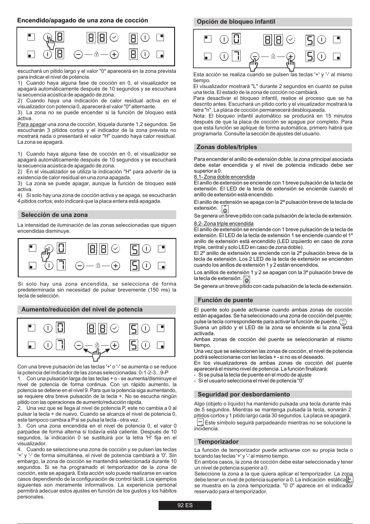 4. Cuando se seleccione una zona de cocción y se pulsen las teclas