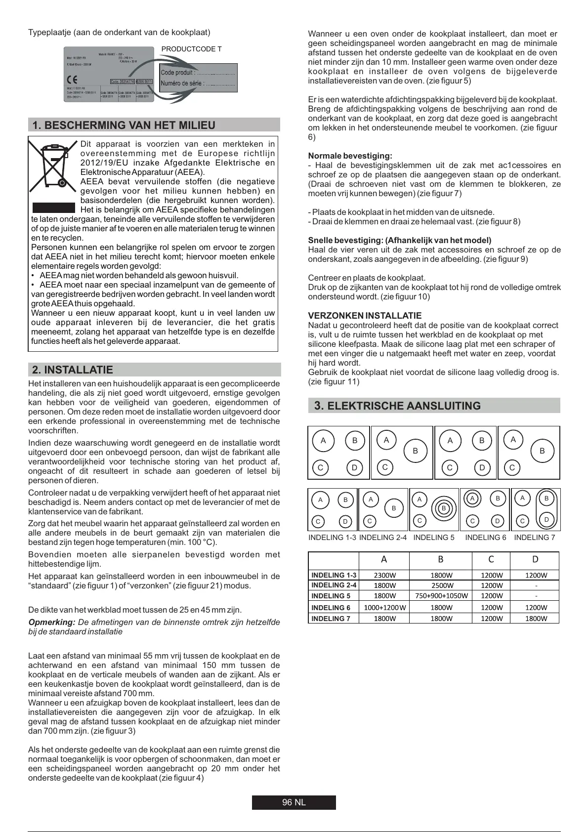 Er is een waterdichte afdichtingspakking bijgeleverd bij de kookplaat.