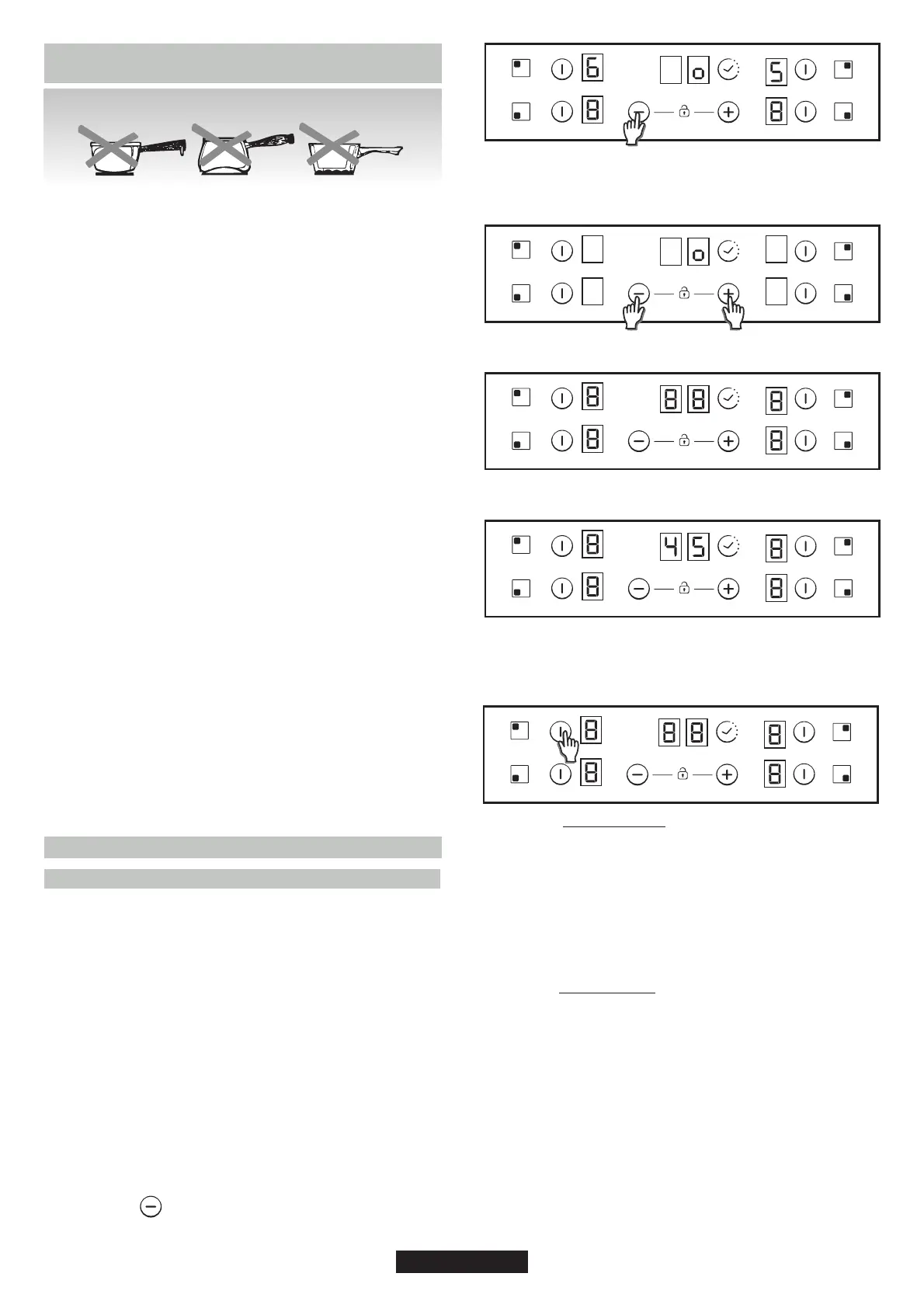 1) Ha bármelyik főzőzóna 0-n áll, a kijelző automatikusan kikapcsol