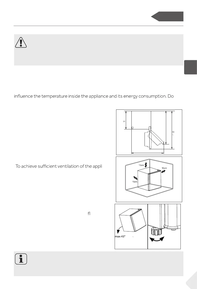 For a free standing appliance: this refrigerating appliance is not intended to be