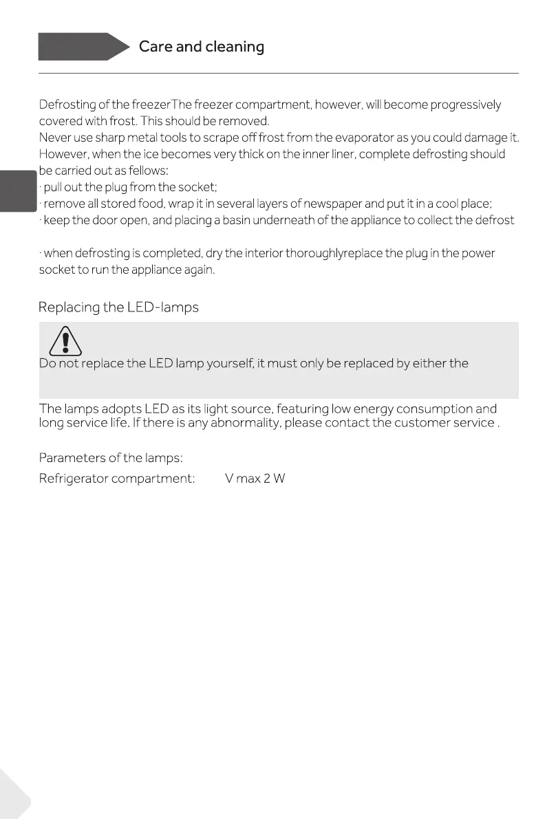 Candy CHASD4385EWC - Freezer Defrosting and Lamp Replacement; Defrosting Instructions; LED Lamp Replacement