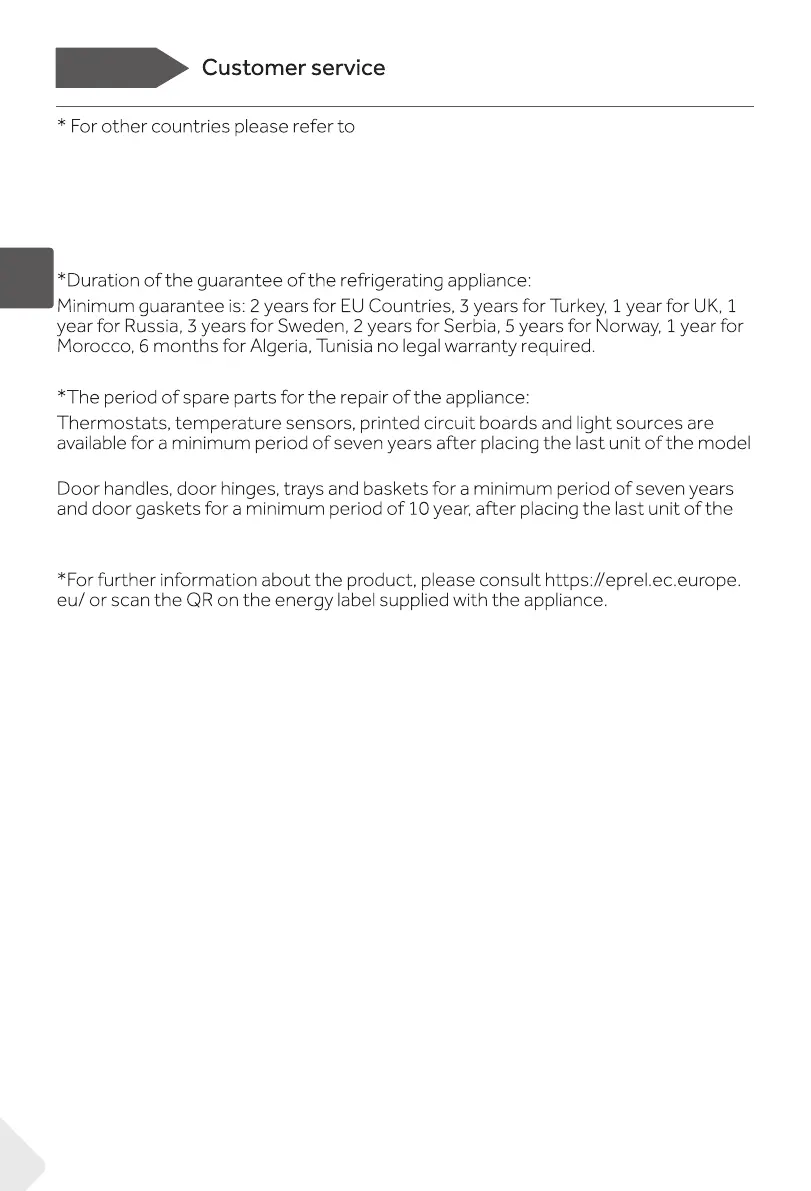 Candy CHASD4385EWC - Guarantee and Spare Parts Information