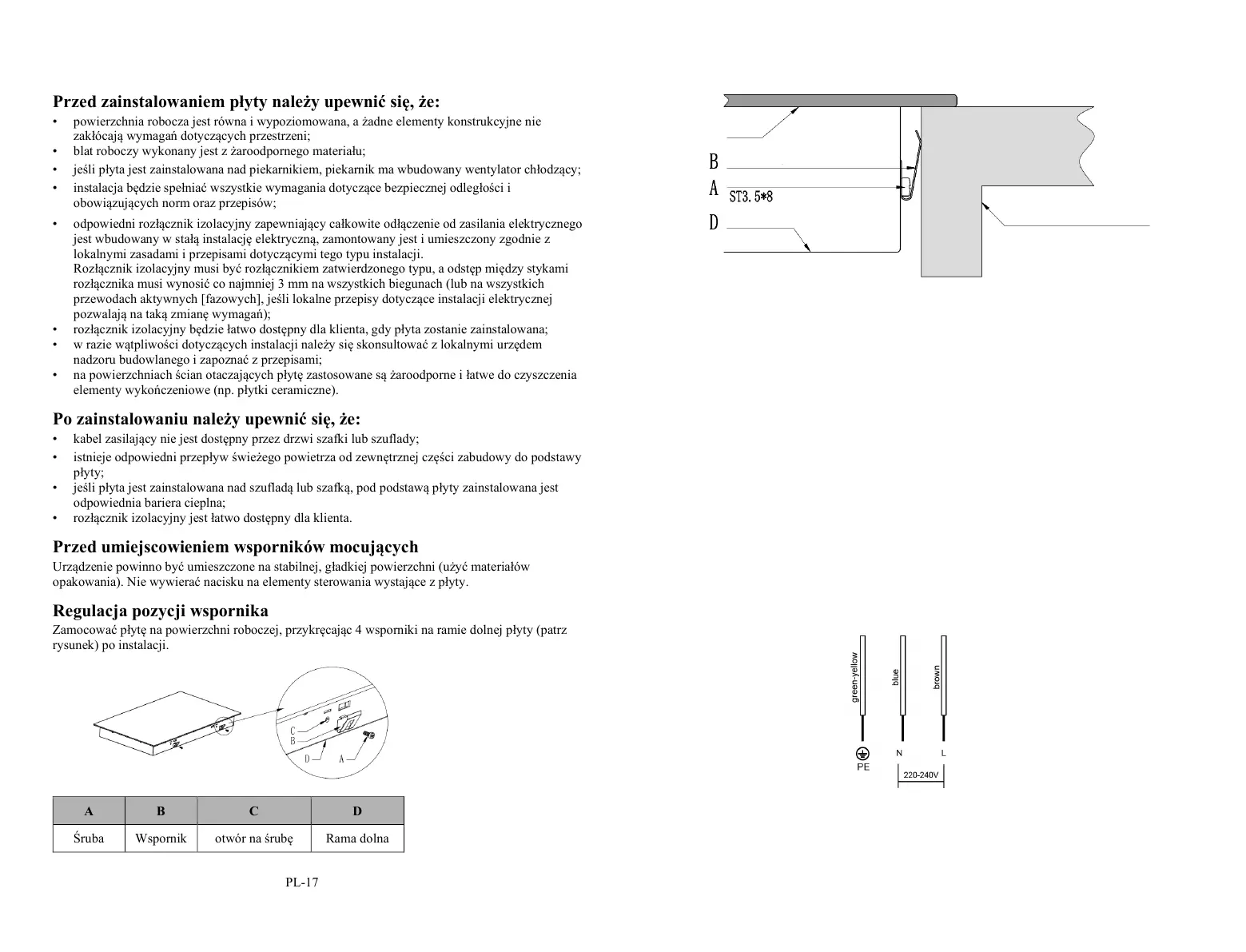 okablowane na stałe, musi być zainstalowane przez wykwalifikowany personel lub techników.