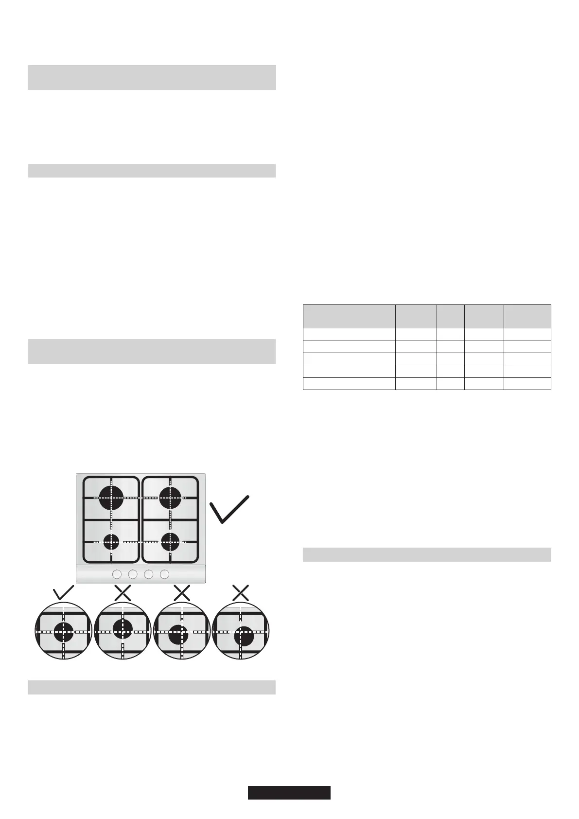 Antes de encender la placa de gas asegúrese de que los quemadores