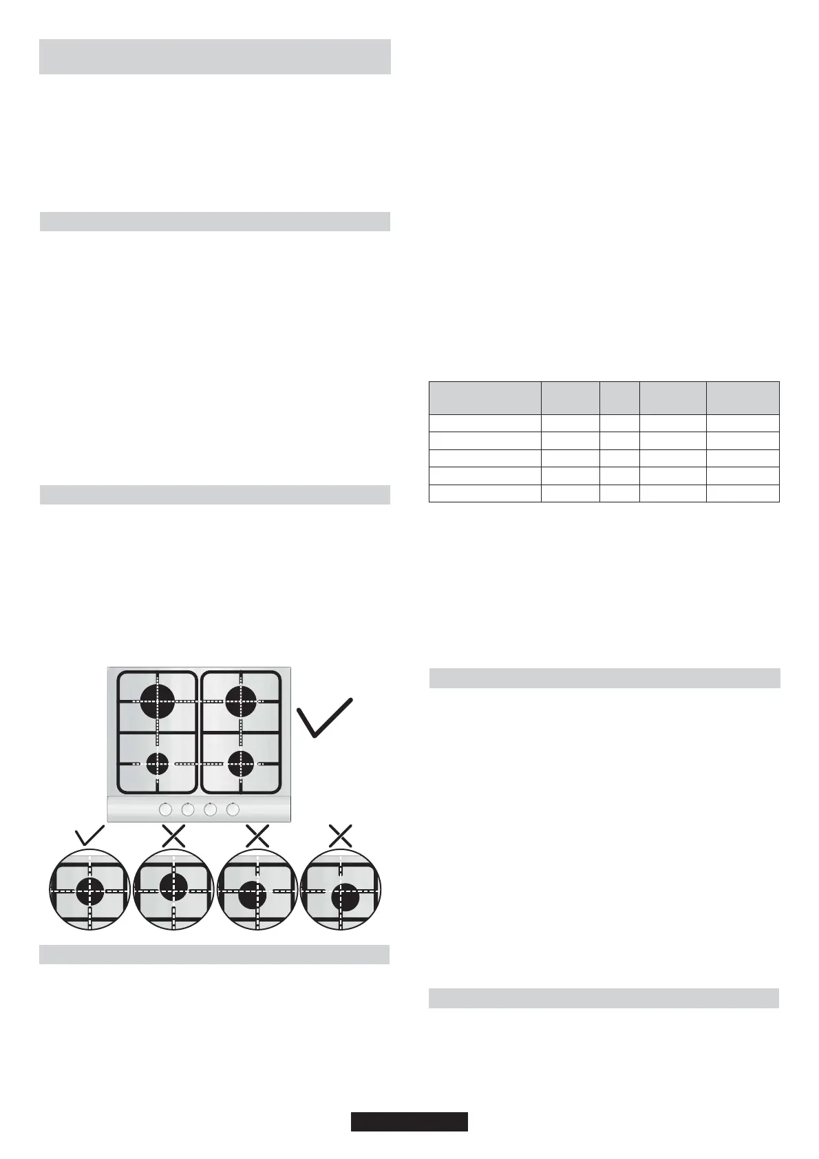ATTENTION : Avant d'allumer la table gaz, veillez à ce que les brûleurs