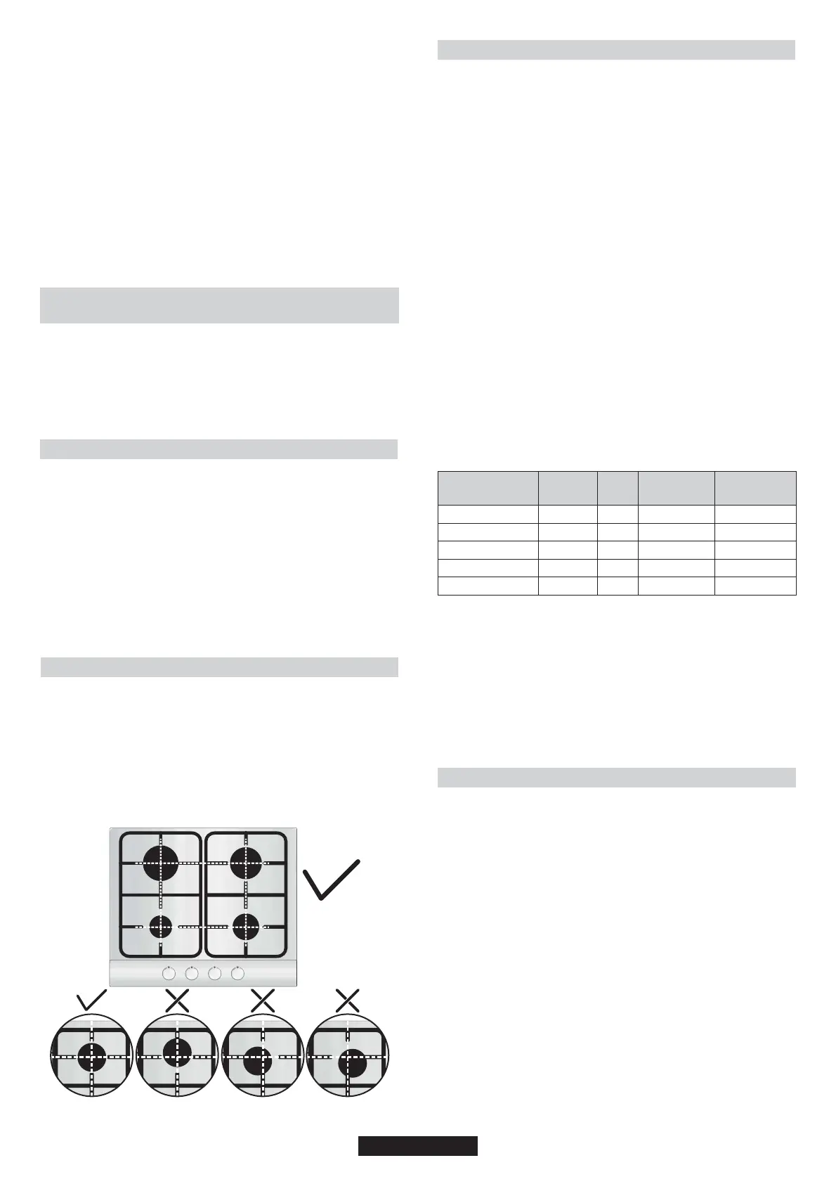Prior to switching on the gas hob ensure that the burners and burner