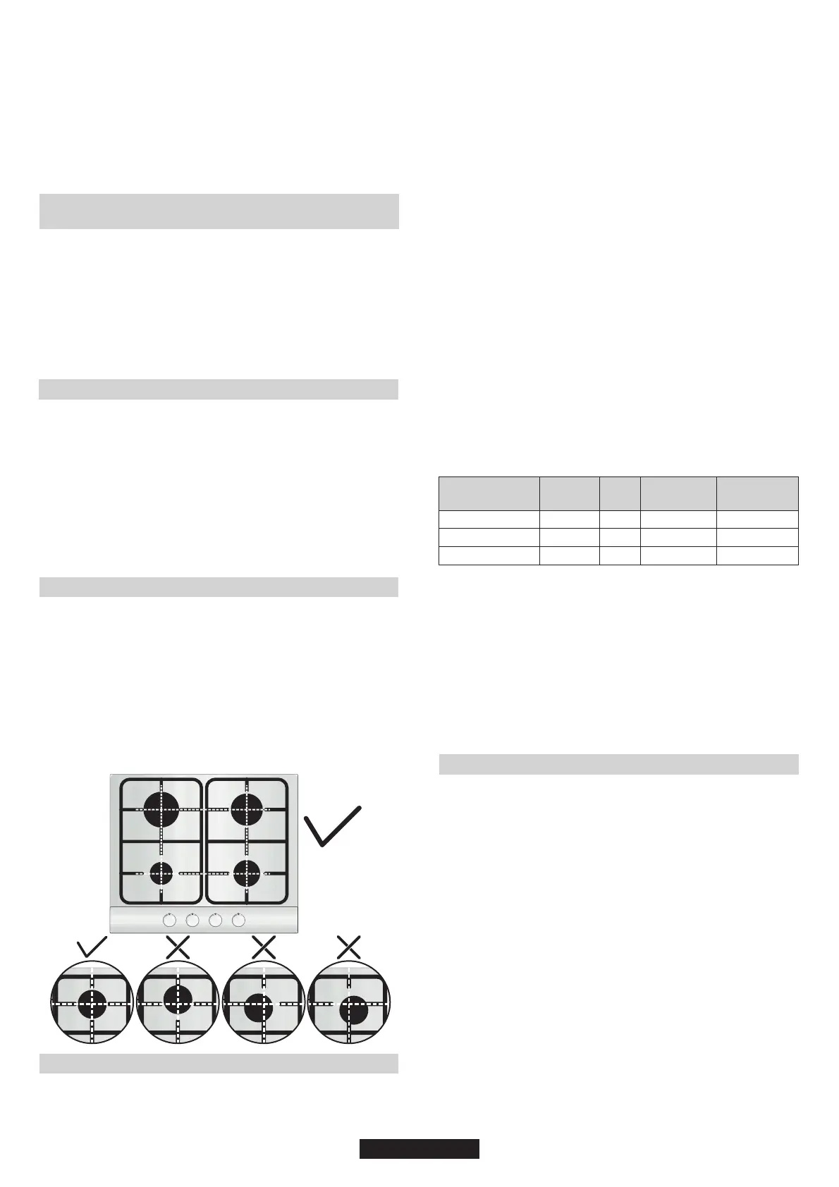 Bevor Sie das Gaskochfeld einschalten, überprüfen Sie, dass die