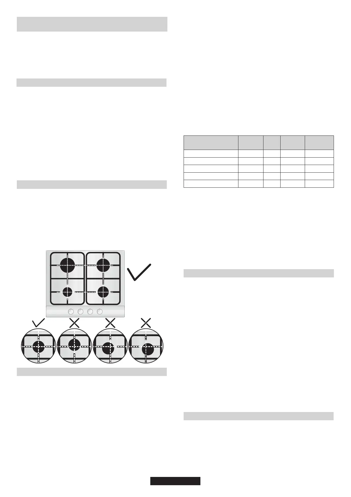 şekilde gaz ocağı gözü ölçülerine uygun olmalıdır: Tablo A.