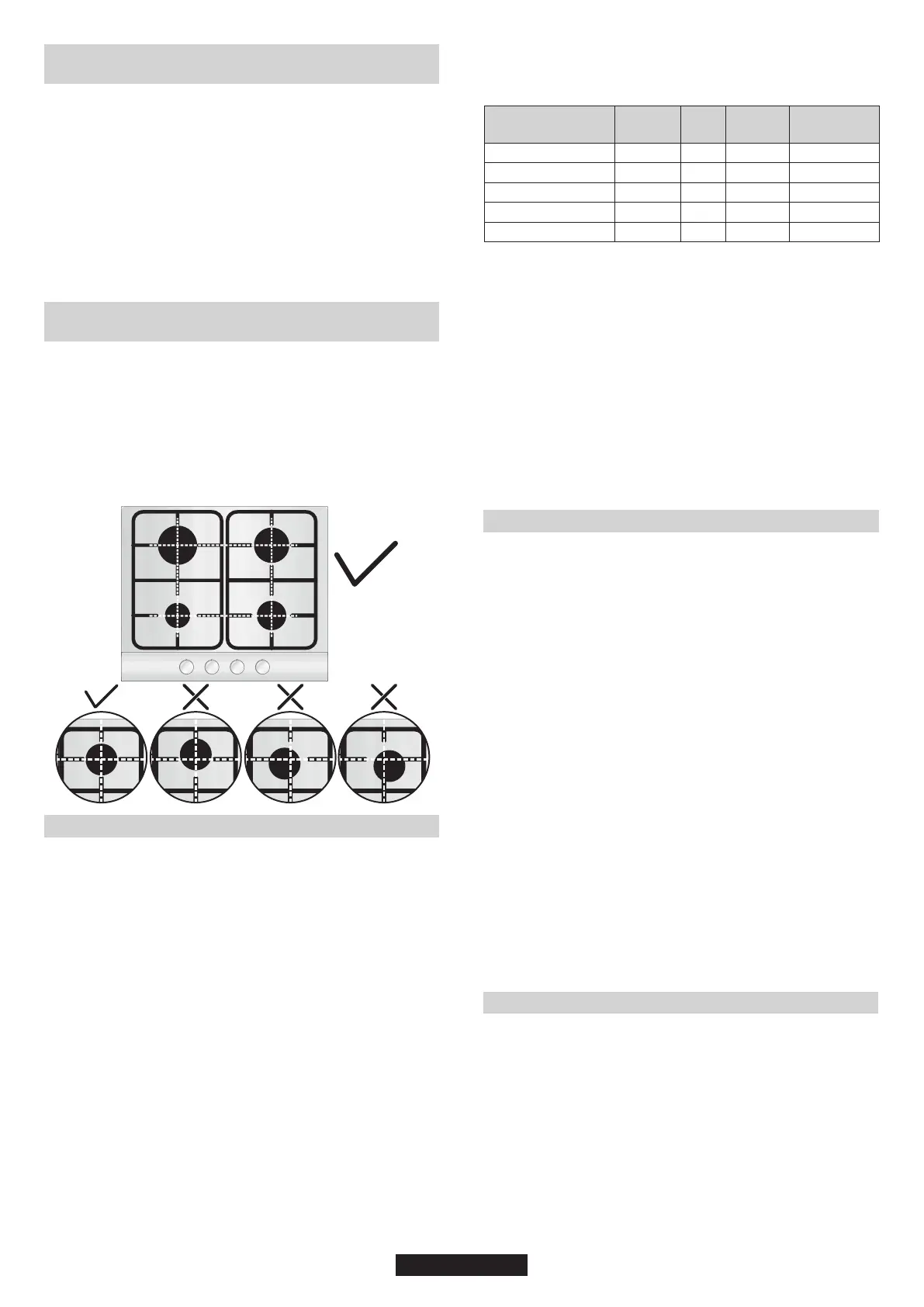 tablico s podatki o vrsti plina z ustrezno (priložena kuhalni plošči), tako