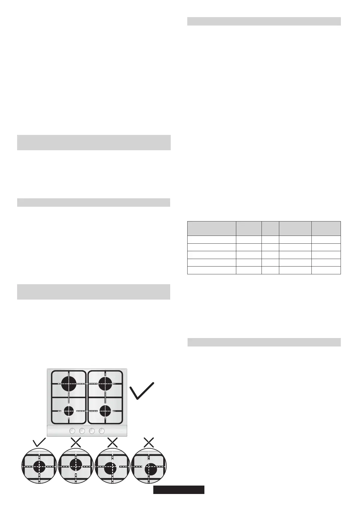 Este foarte important ca arzătoarele să fie aşezate corect.