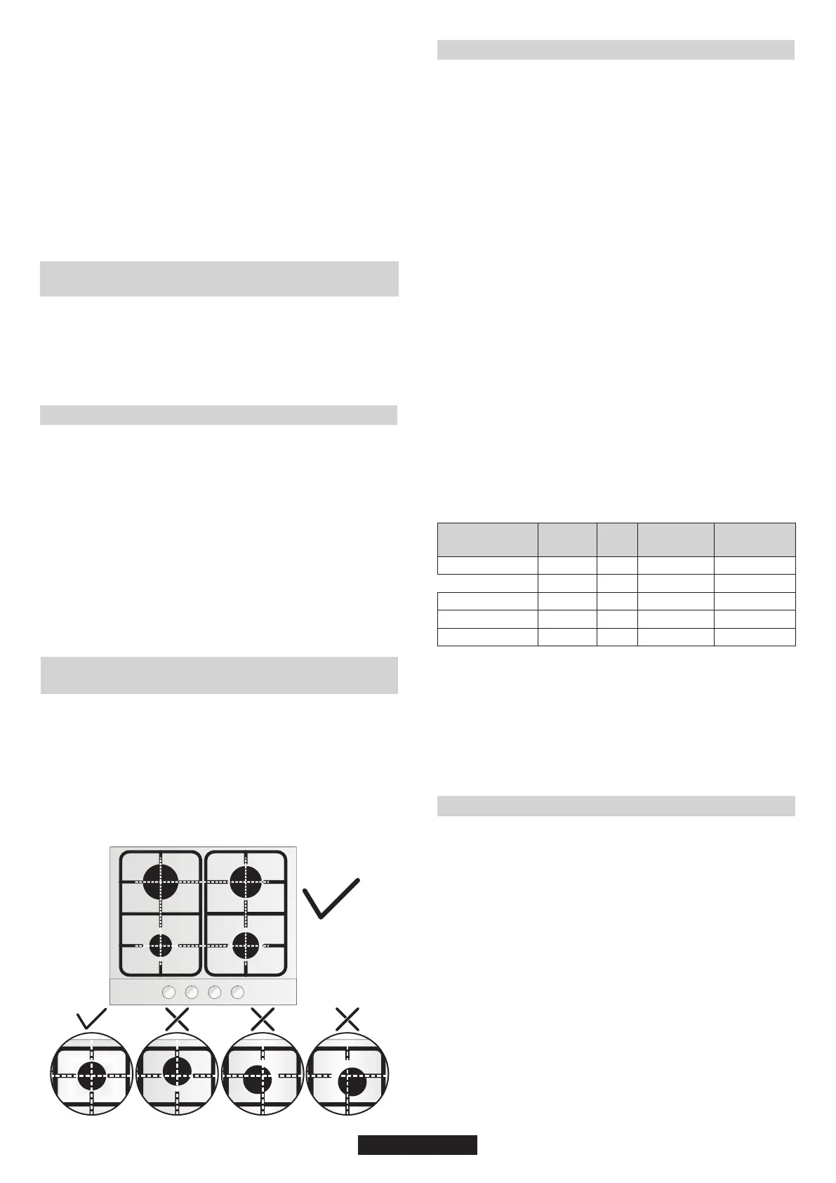 Pred zapnutím varnej dosky sa uistite, že horáky a viečka horákov sú