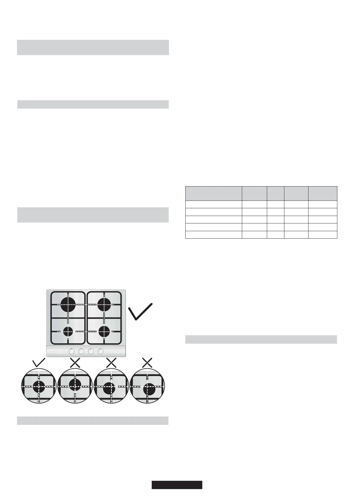 Antes de encender la placa de gas asegúrese de que los quemadores