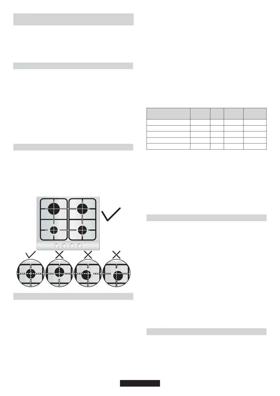 şekilde gaz ocağı gözü ölçülerine uygun olmalıdır: Tablo A.