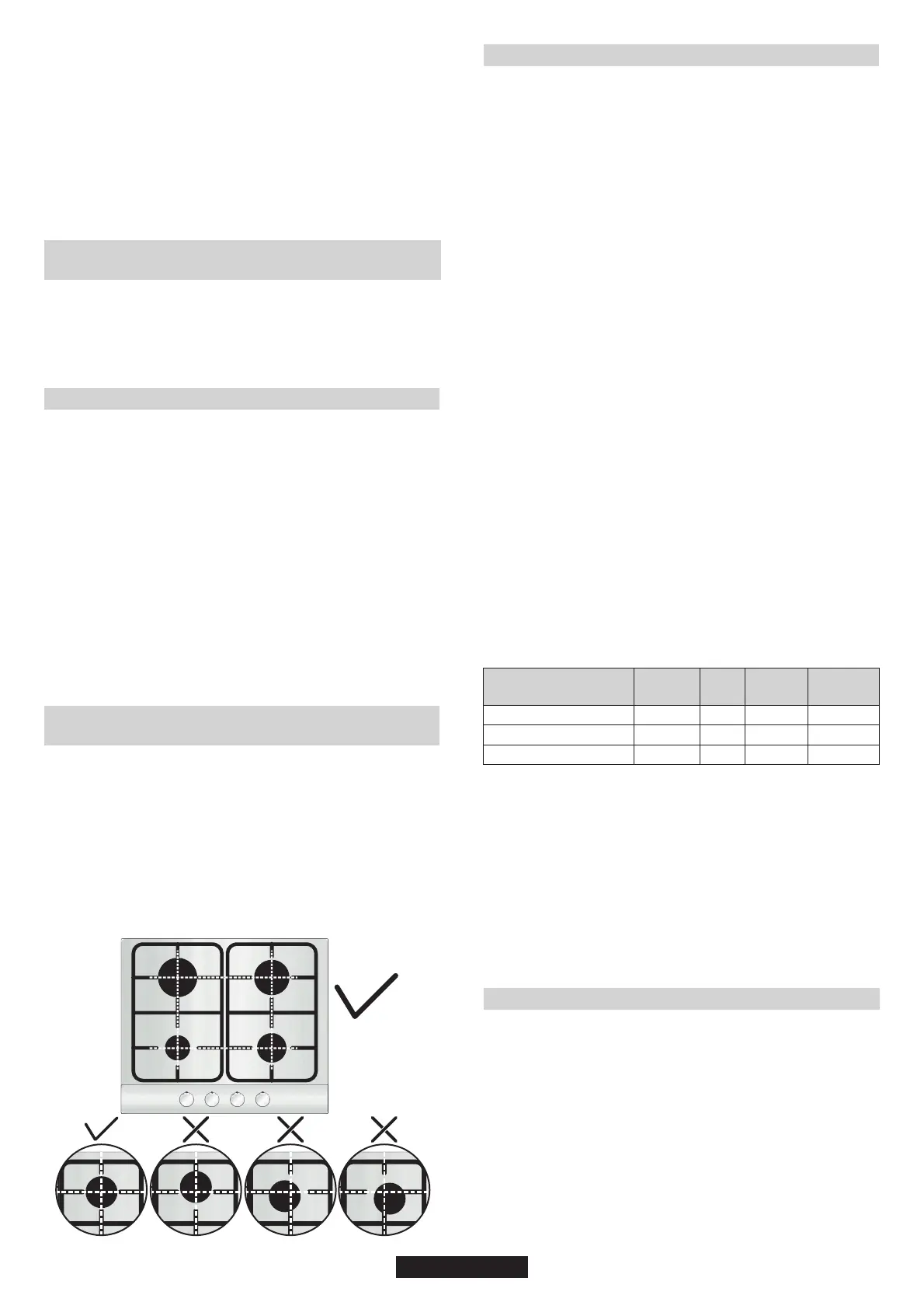Przed włączeniem płyty gazowej, należy upewnić się, że palniki i
