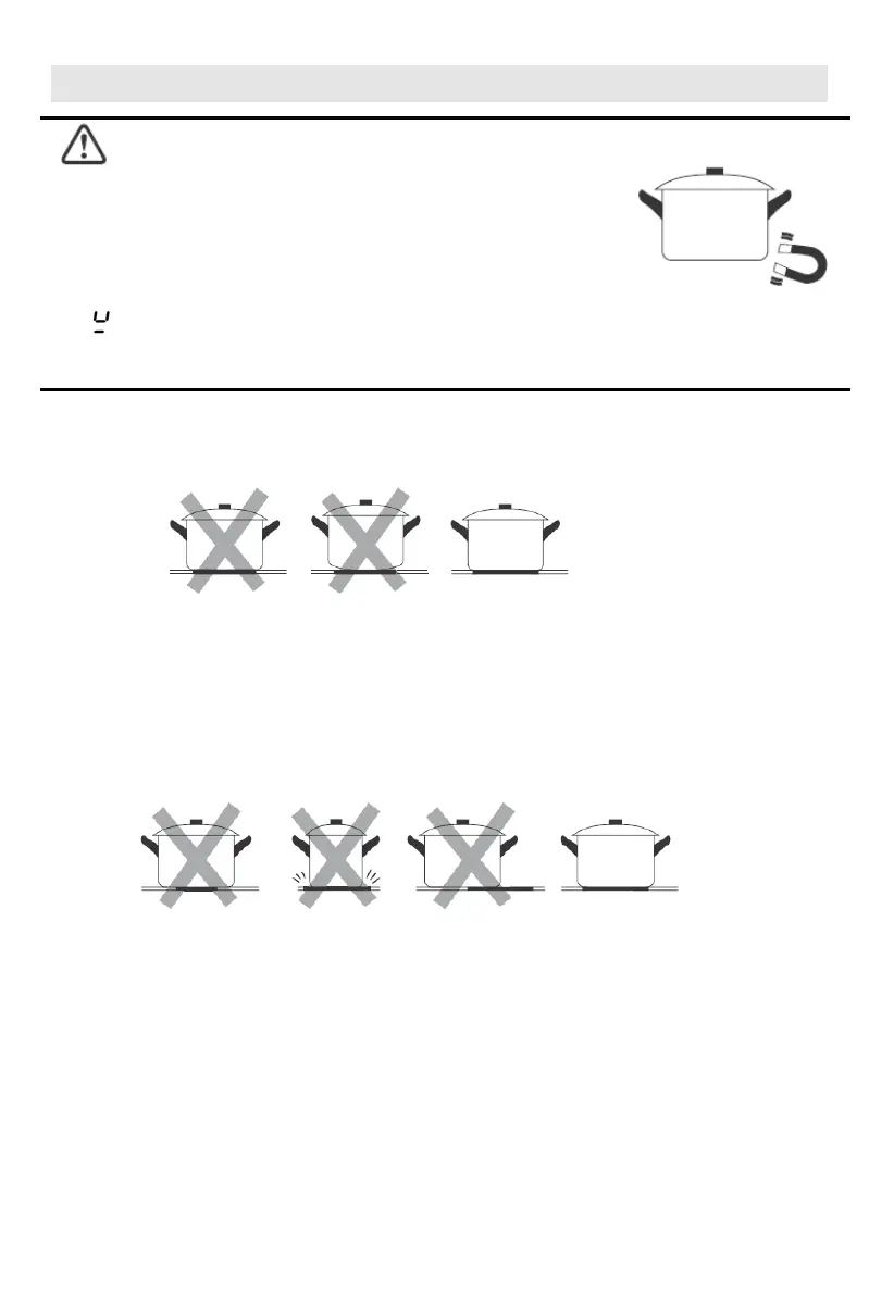 • Cookware made from the following materials is not suitable: pure stainless steel, aluminium or