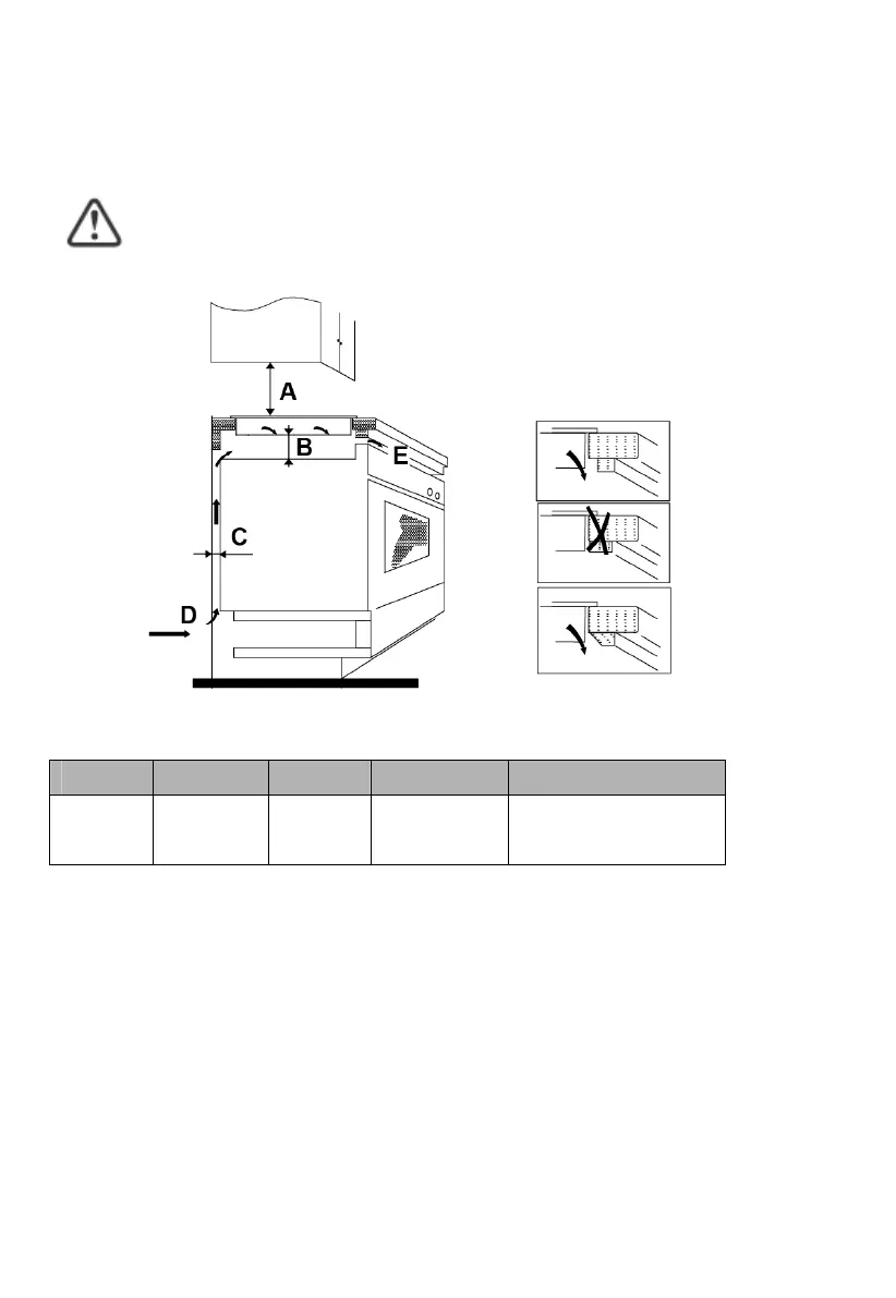 Uwaga: bezpieczna odległość pomiędzy płytą grzejną a szafkami