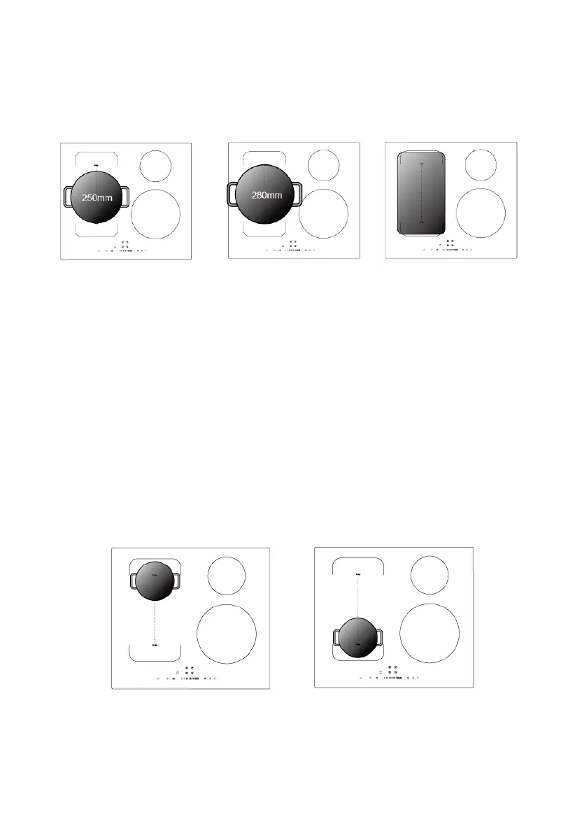 (a) Ponha duas panelas em ambos os lados da zona flexível.