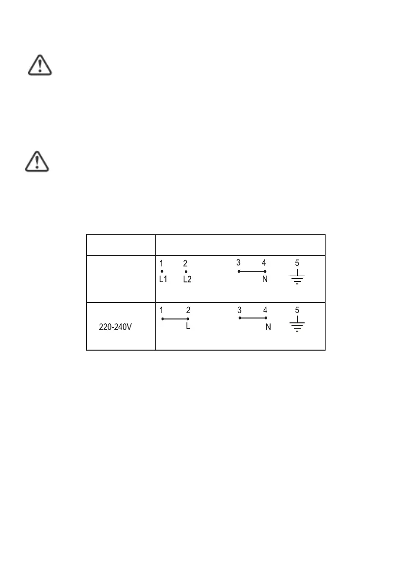 • Der Installateur muss sicherstellen, dass eine korrekte elektrische Verbindung