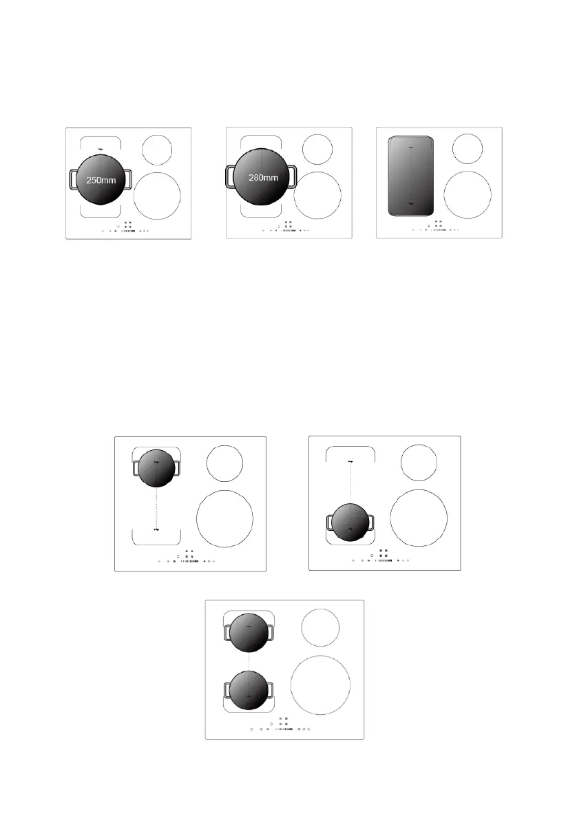 (b)Plaats twee kookpotten op beide delen van de flexibele zone.