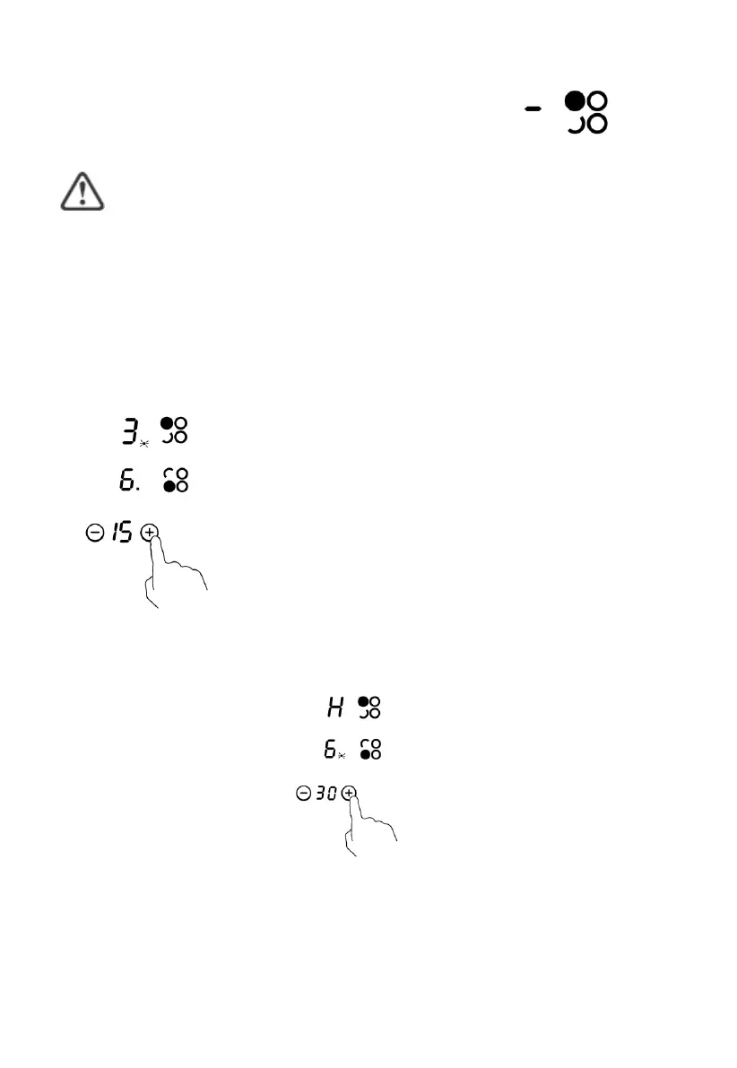 branden decimale puntjes van de relevante kookzones. De minutendisplay geeft