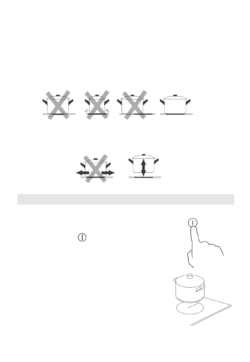 expected. Pot less than 140 mm could be undetected by the hob. Always centre