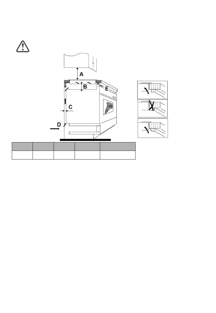 Note: The safety distance between the hotplate and the cupboard above