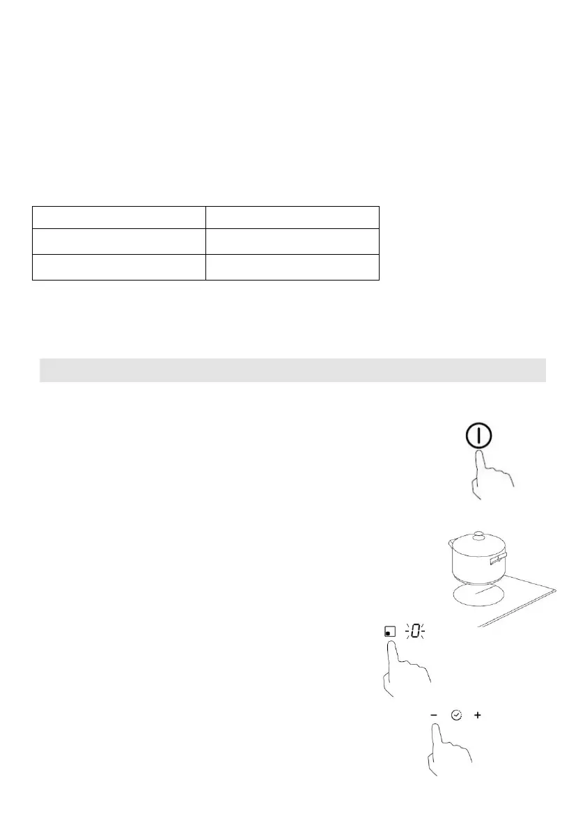 2. Place a suitable pan on the cooking zone that
