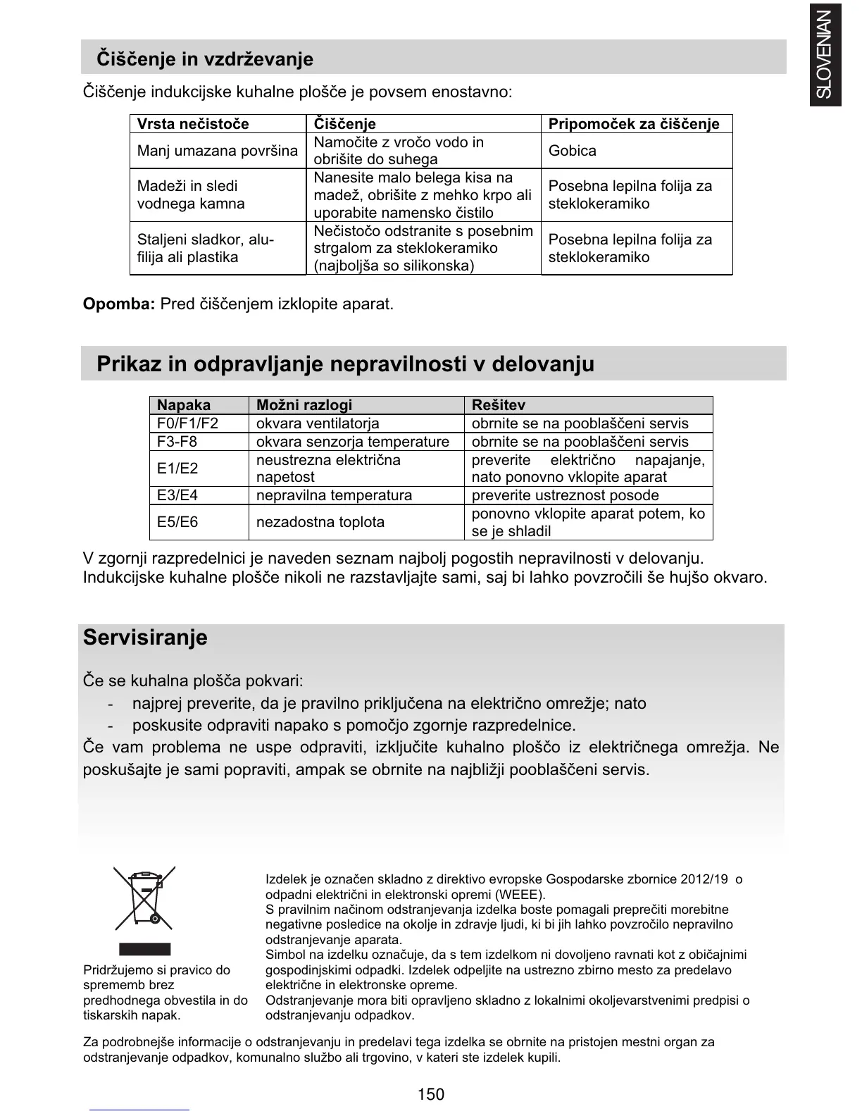 Indukcijske kuhalne plošþe nikoli ne razstavljajte sami, saj bi lahko povzroþili še hujšo okvaro.