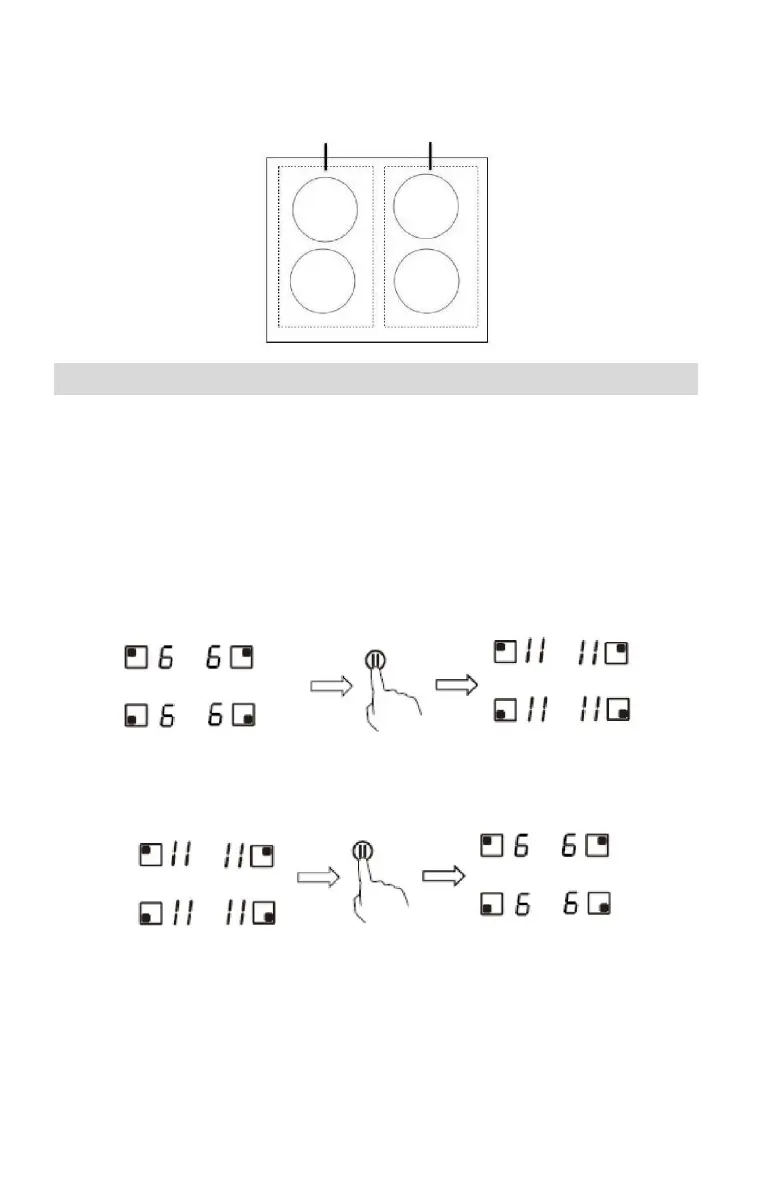 2. Toque no botão STOP+GO, o indicador da zona de cozedura irá indicar "ll".