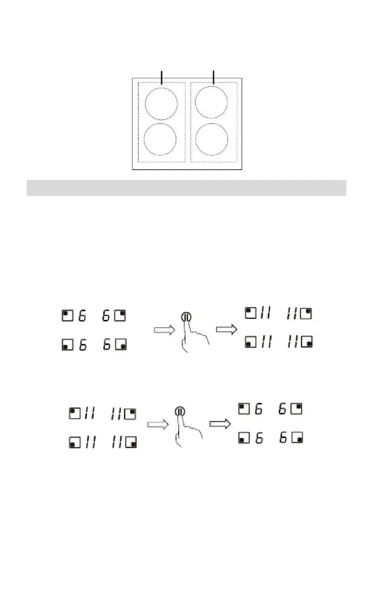 2. Klepněte na tlačítko STOP+GO, indikátor varné zóny zobrazí znaky „ll“.