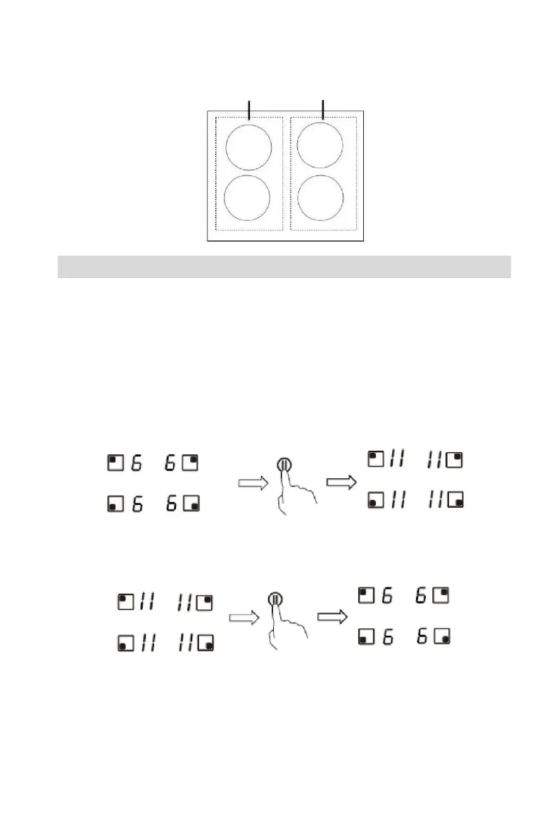 2. Toccando il tasto STOP+GO, l'indicatore della zona di cottura visualizza "ll".