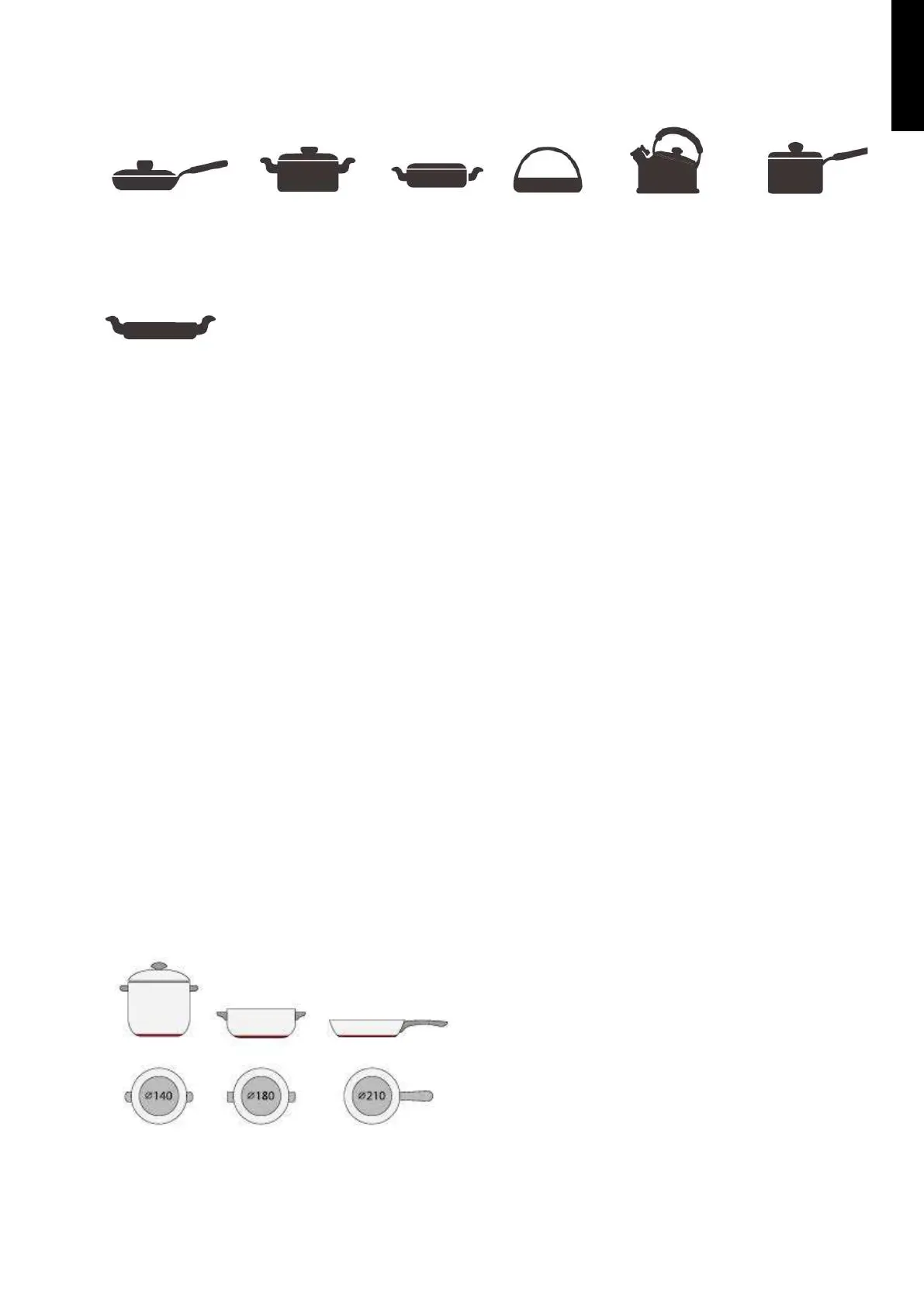Відповідно до розмірів зони можна використовувати каструлі з різним діаметром, як