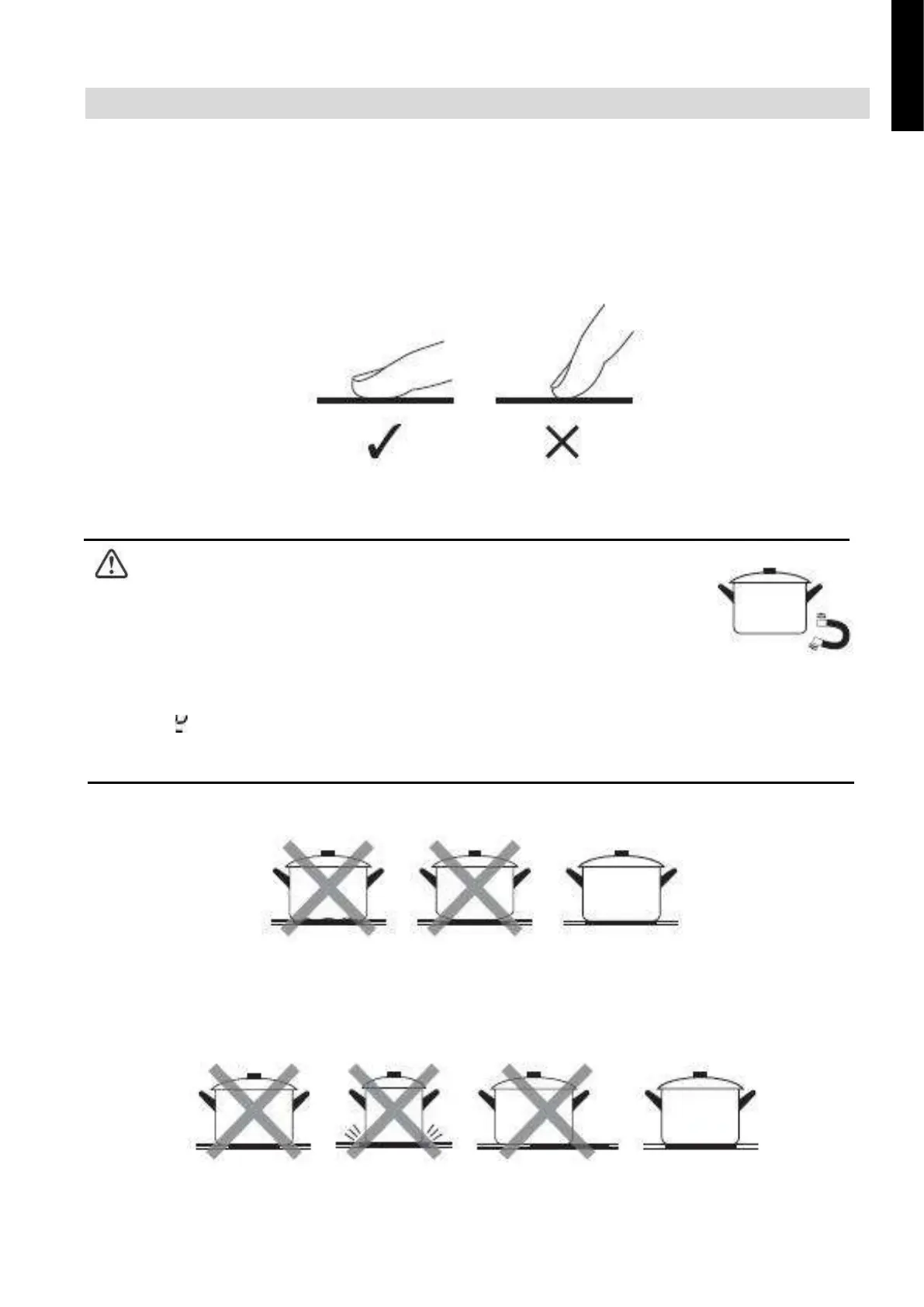 Varmista, että kattilan pohja on sileä ja että se asettuu tarkasti lasipinnalle ja että se on