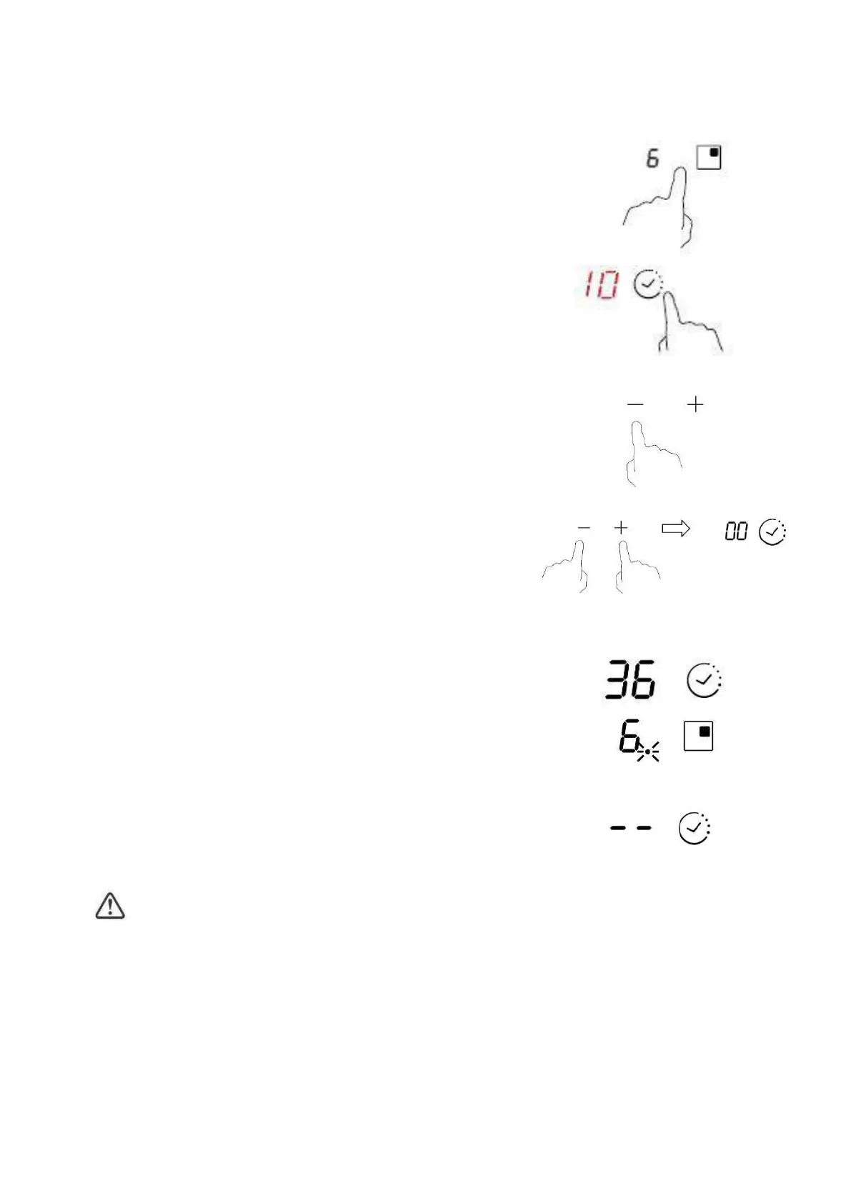 Koskettamalla ”-” ja ”+” yhdessä, ajastin peruutetaan ja