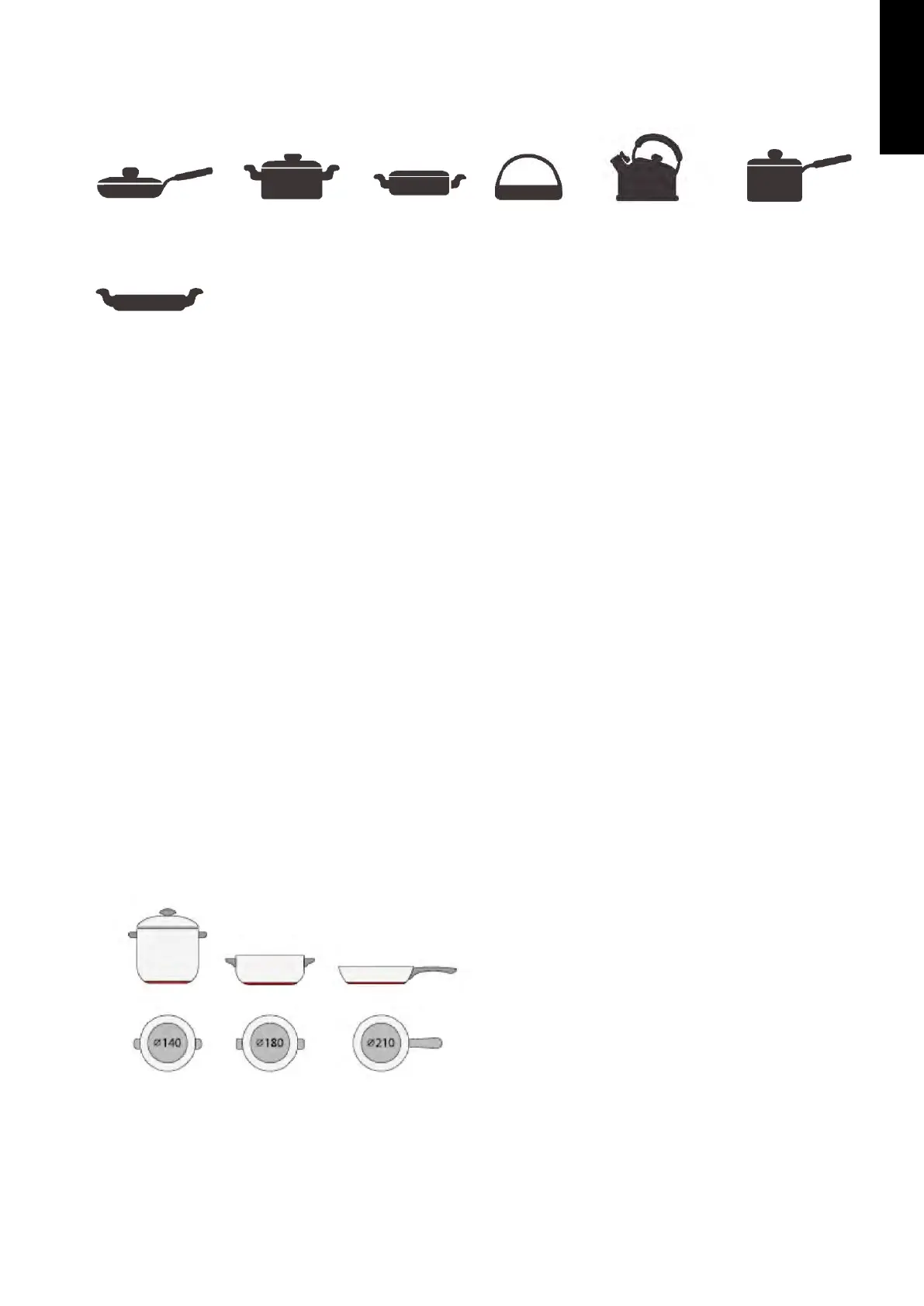 A seconda della dimensione della zona, è possibile utilizzare pentole di vari diametri, come