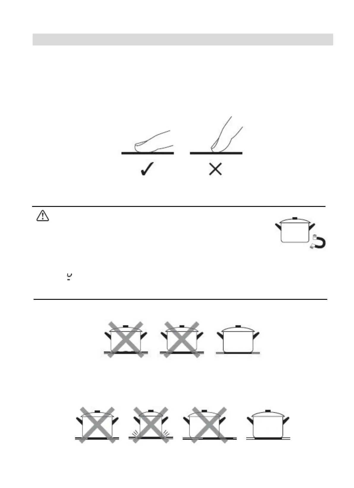 Varmista, että kattilan pohja on sileä ja että se asettuu tarkasti lasipinnalle ja että se on