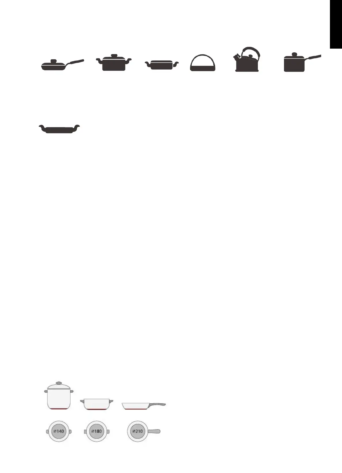 Je nach Größe der Zone können Sie unterschiedlich großes Kochgeschirr benutzen (siehe