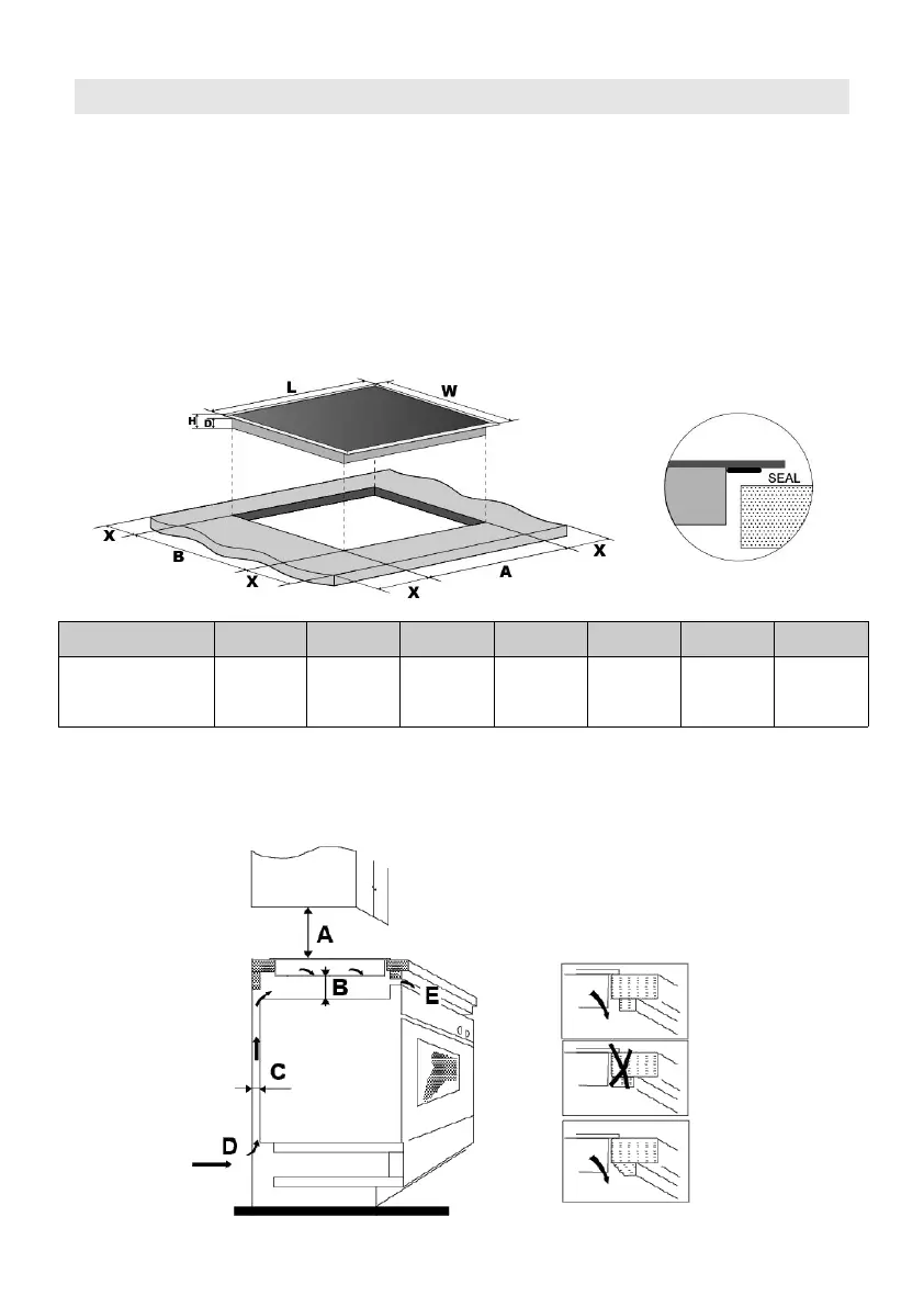 Note: The safety distance between the hotplate and the cupboard above the hotplate