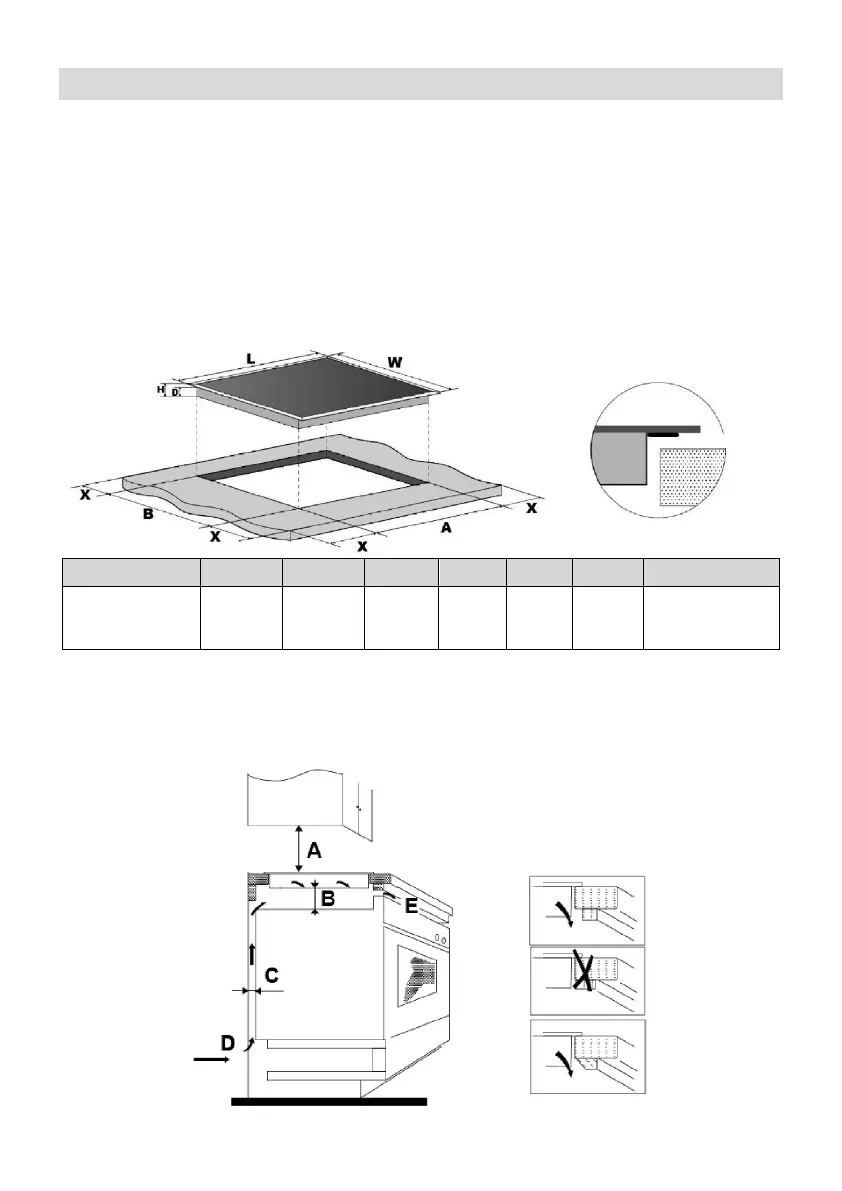 • Κόψτε την επιφάνεια εργασίας σύμφωνα με τις διαστάσεις που φαίνονται στο σχέδιο.