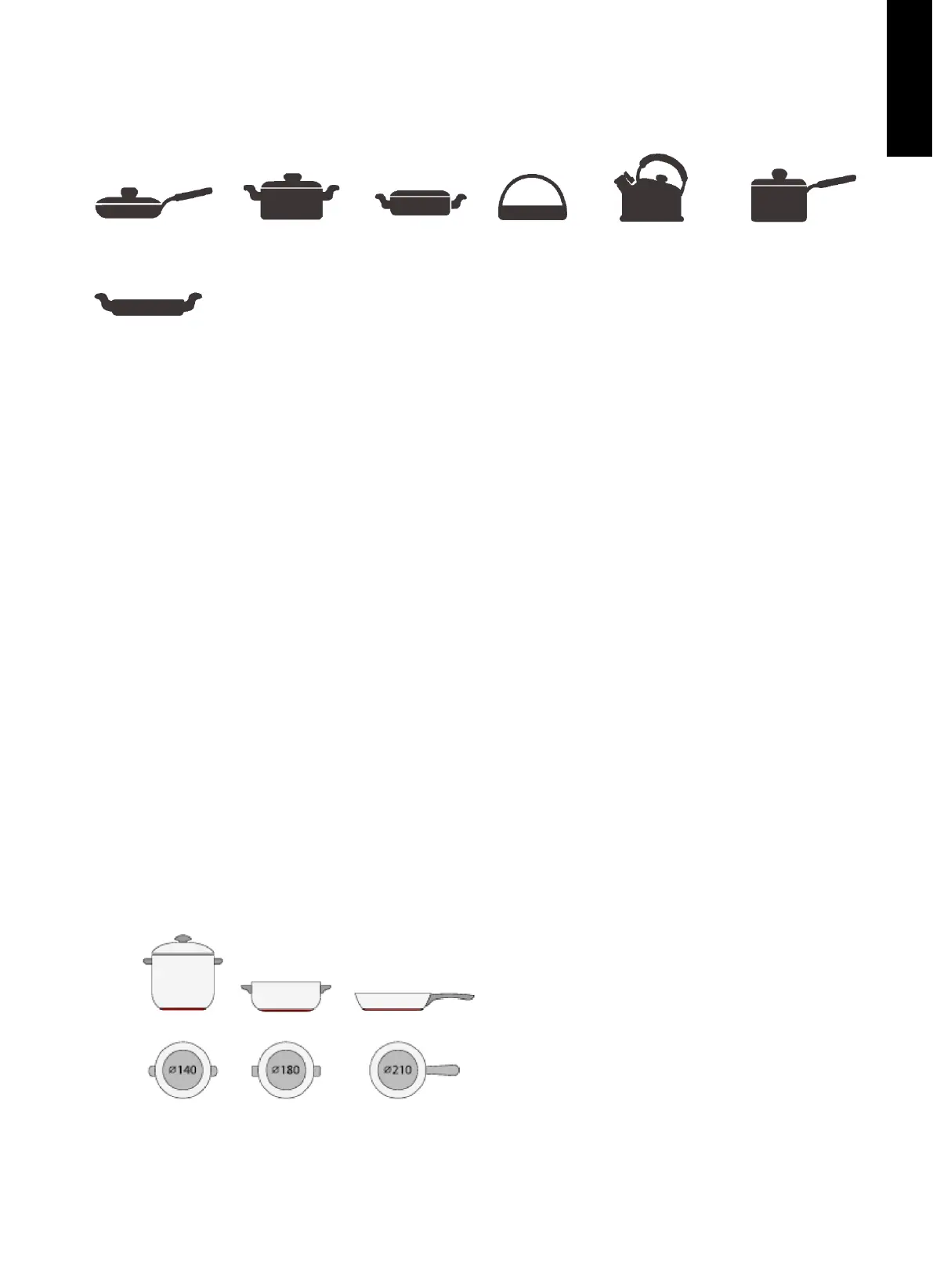 A zóna méretének megfelelően különböző méretű edényeket használhat, tájékozódjon az alábbi