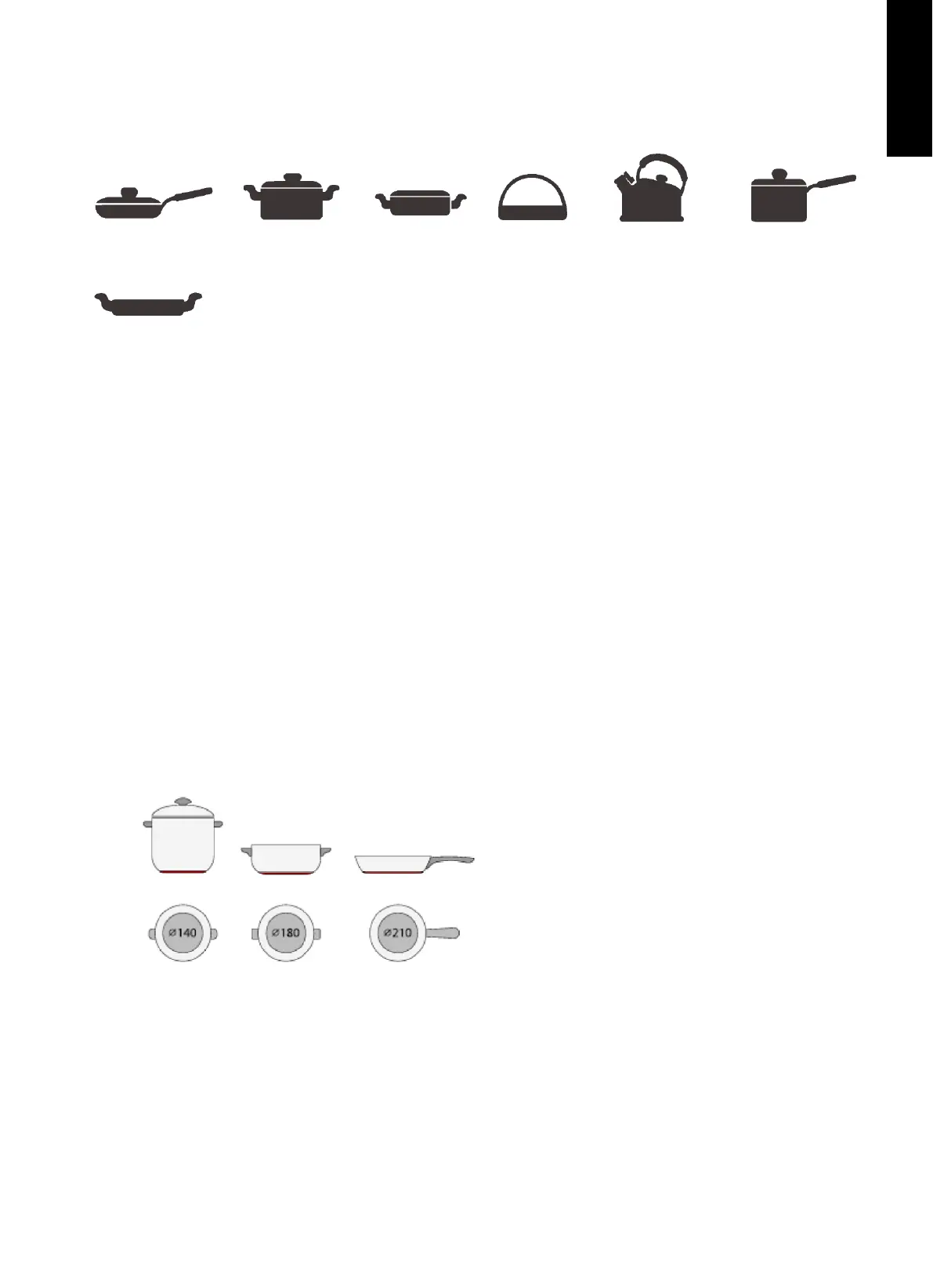 Glede na velikost kuhališča lahko uporabljate posodo različnega premera, kot je prikazano